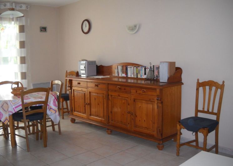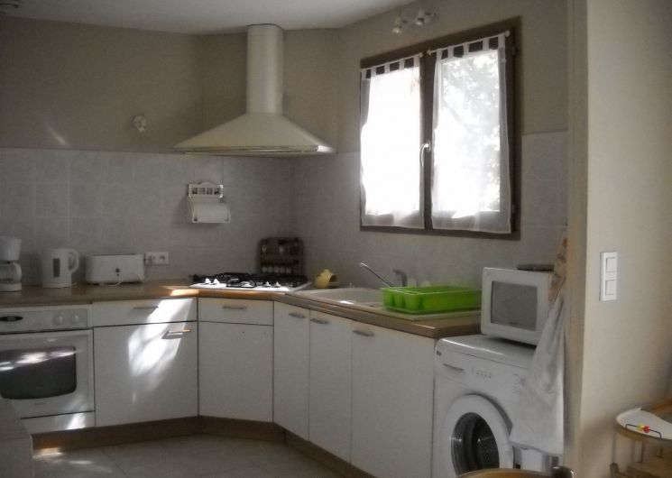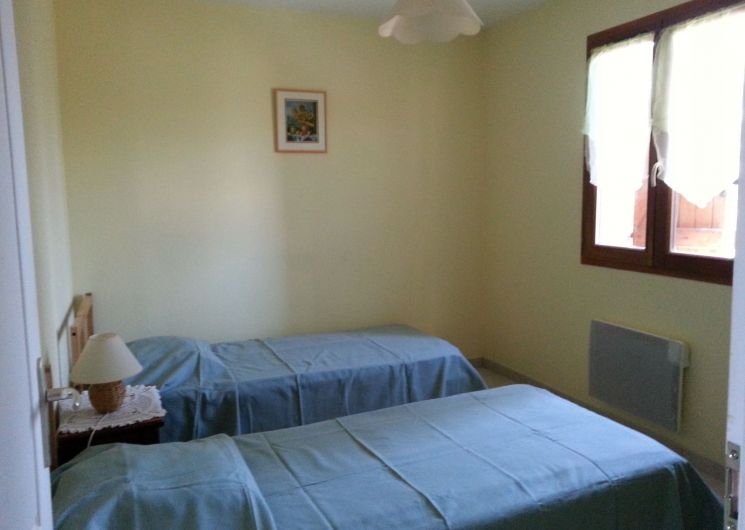 En la planta baja: sala de estar (sofá, TV, reproductor de DVD), cocina integrada (lavadora, microondas), 1 WC. En el primer piso: espacio de oficina, 1 dormitorio (1 cama 140) de una habitación (2 camas 90), 1 baño con WC, calefacción eléctrica. Terraza privada (15 m²) con muebles de jardín, barbacoa. 1/2 tierra privada cerrada (1000 m²).