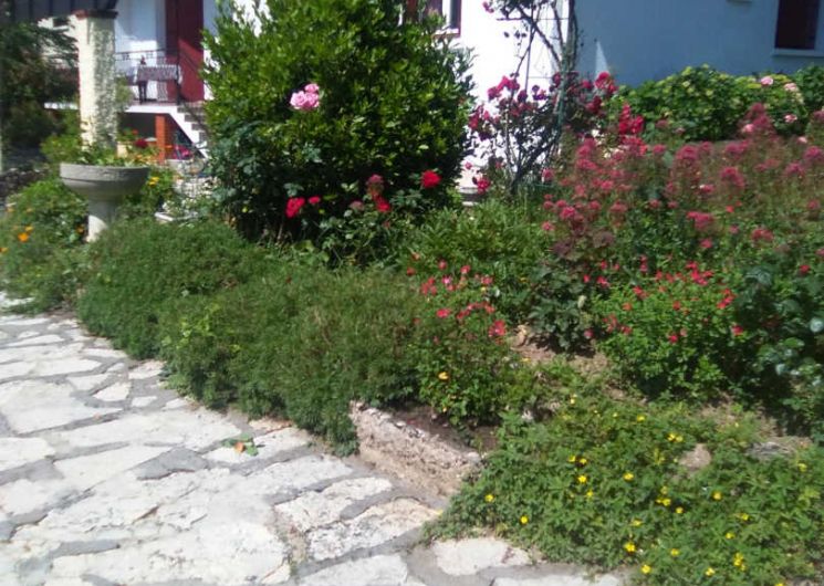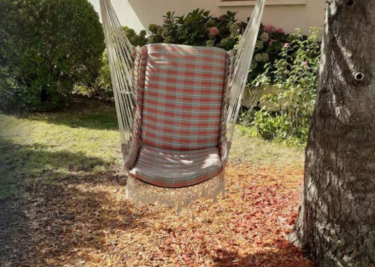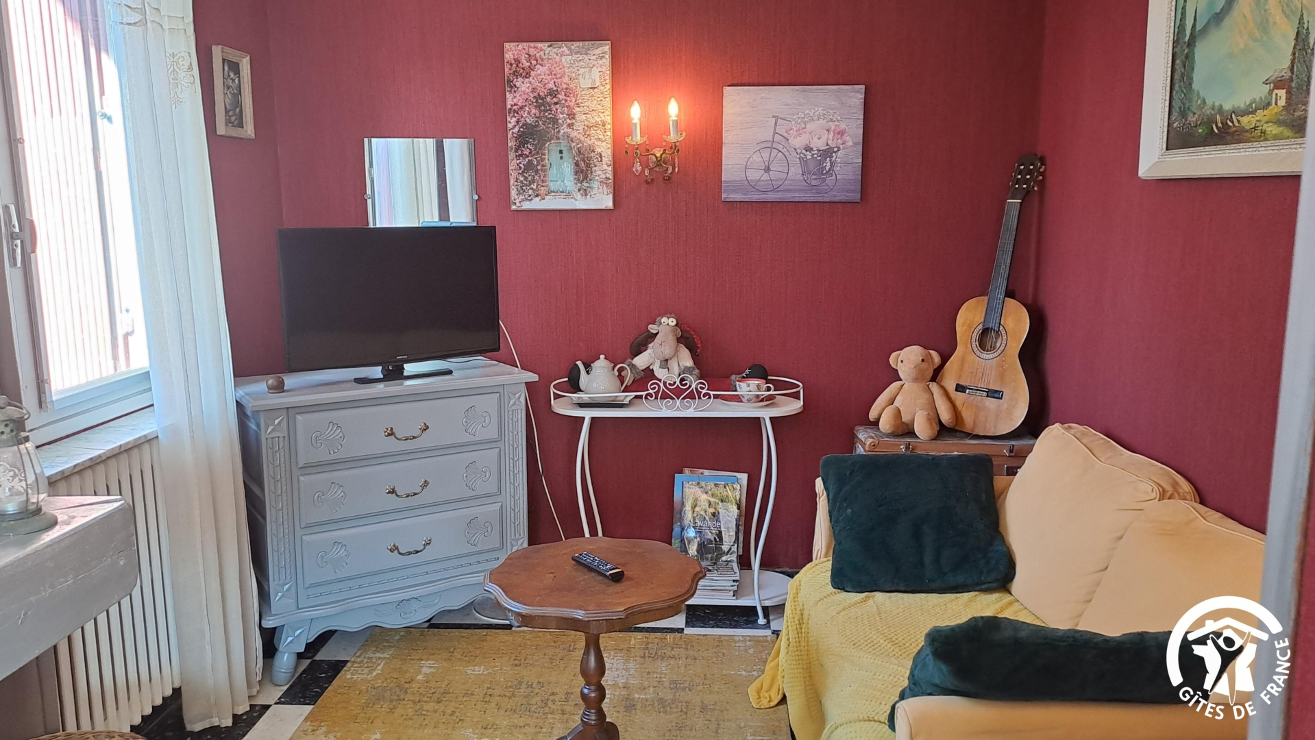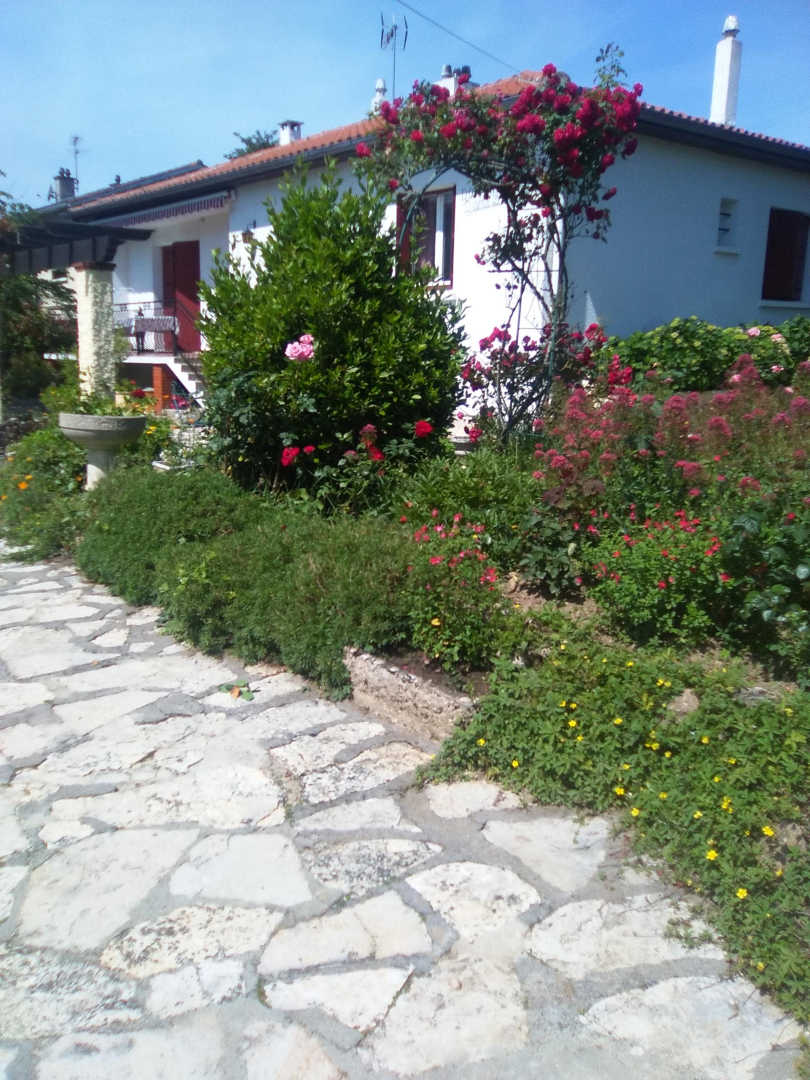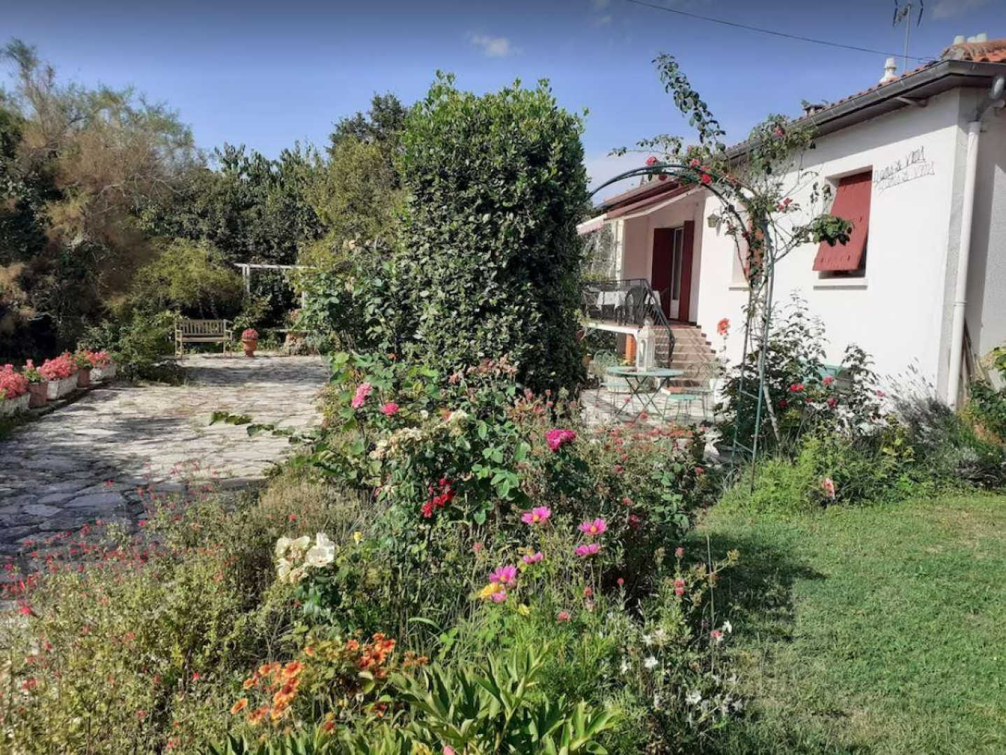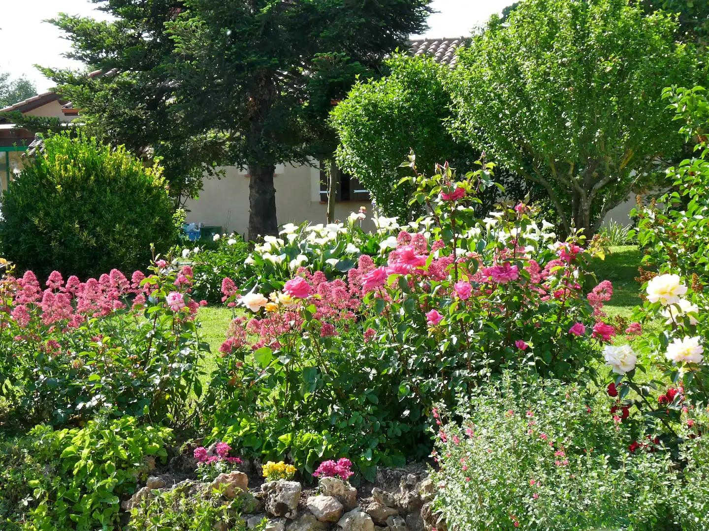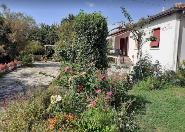 Les extérieurs : le jardin entoure toute la maison avec ses nombreuses fleurs. Le terrain est clôturé sur les côtés, mais l’arrière de la maison est seulement séparée par une haie qui donne sur la maison des propriétaires. Vous pouvez vous garer juste devant la maison, dans la cour avec un portail fermé.