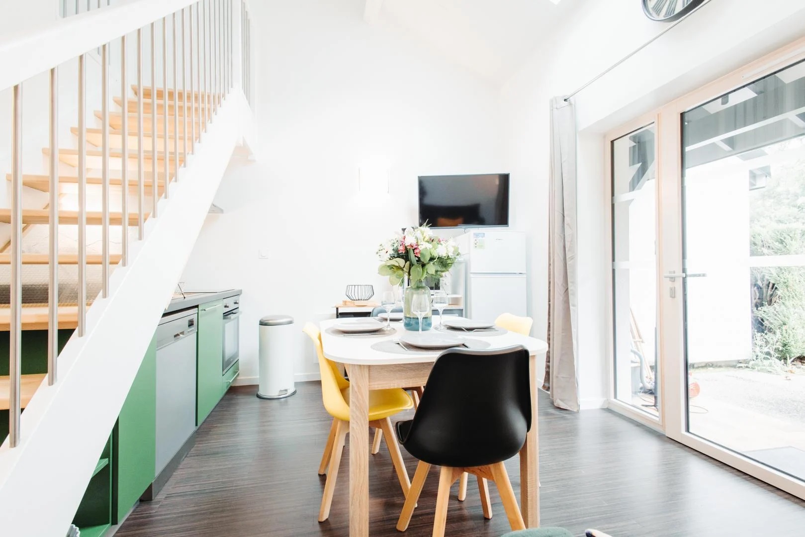 Le encantará el colorido salón de esta casa rural, ampliado por la terraza parcialmente cubierta. Es fácil imaginarse tomando el sol después de un día de deporte o volviendo de un tratamiento de spa.