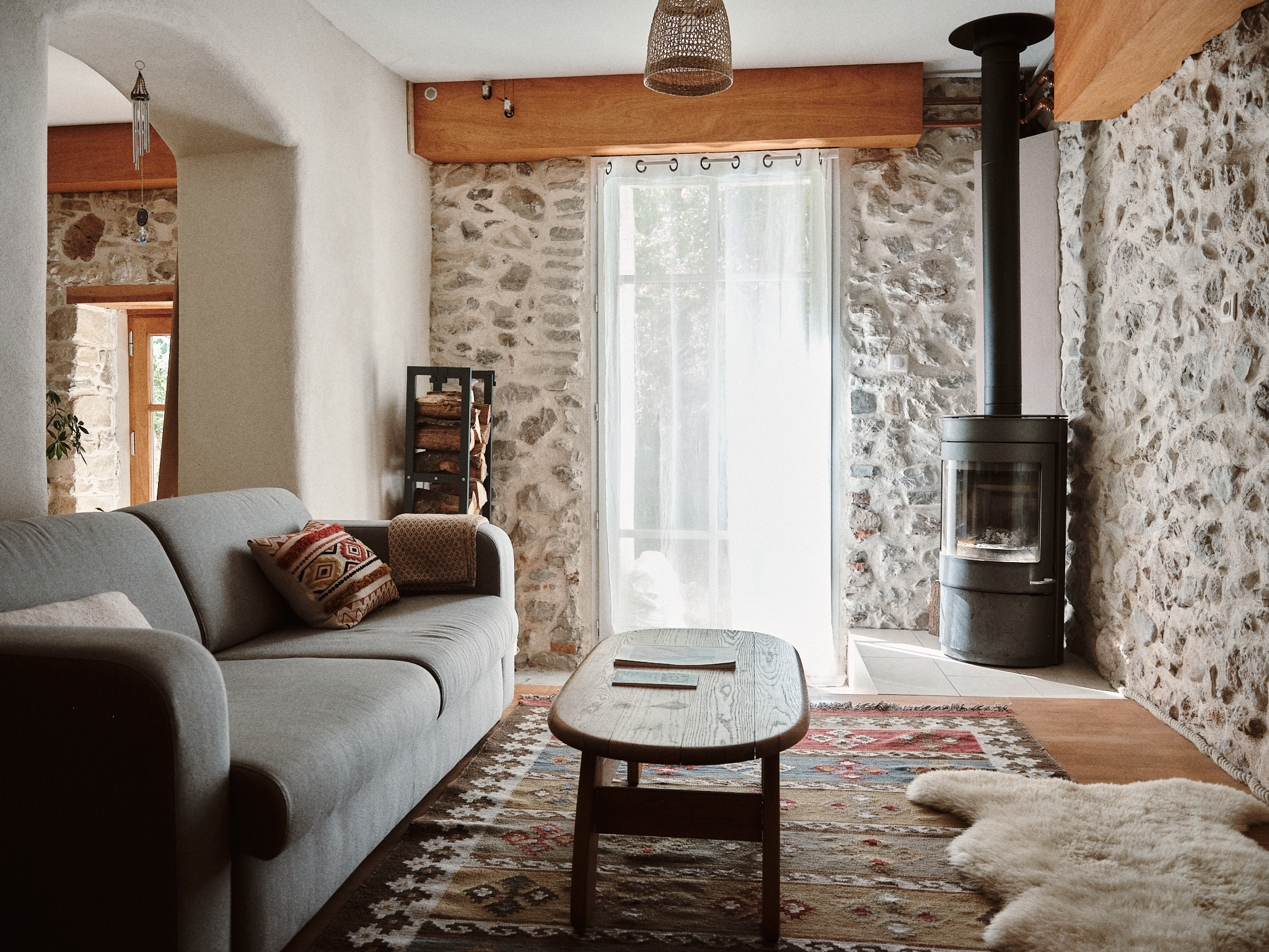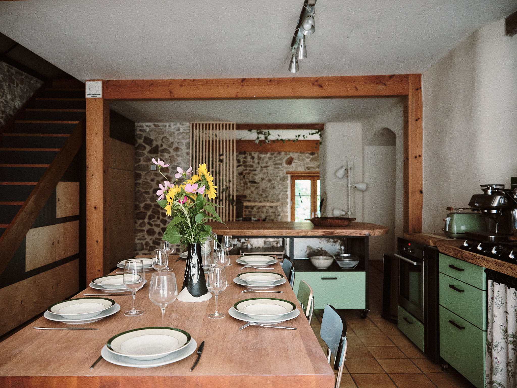 La casa rural consta de un bonito espacio de vida en la planta baja con una cocina americana funcional, una zona de estar y una zona de relajación especialmente diseñada para las sesiones de bienestar.