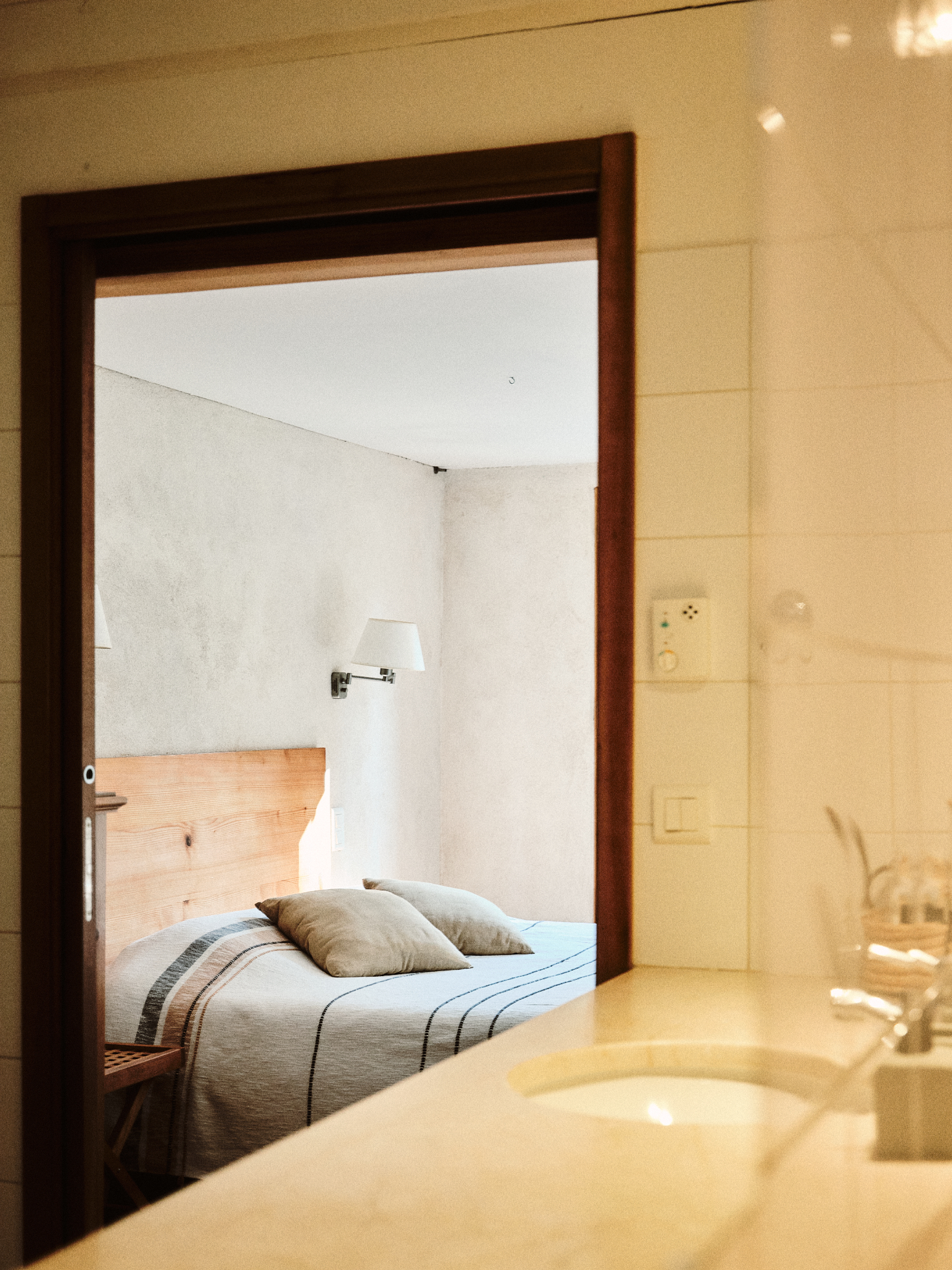 En la primera planta hay un primer dormitorio con cuarto de baño y aseo. Consta de una cama doble de 160 cm y dos camas individuales.