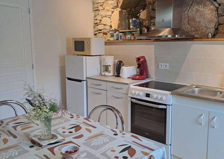 Aménagé dans une ancienne remise en pierre, le gîte offre un intérieur chaleureux et fonctionnel pour un séjour à deux ou trois.