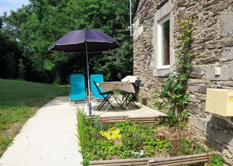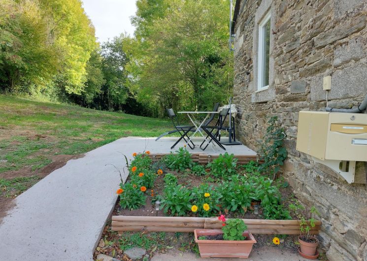 A l’extérieur, un jardin de 600 m² ainsi qu’un espace en devant de porte vous permettent de profiter du calme du hameau, que ce soit autour d’un repas, d’un barbecue ou en chaise longue. La terrasse aména