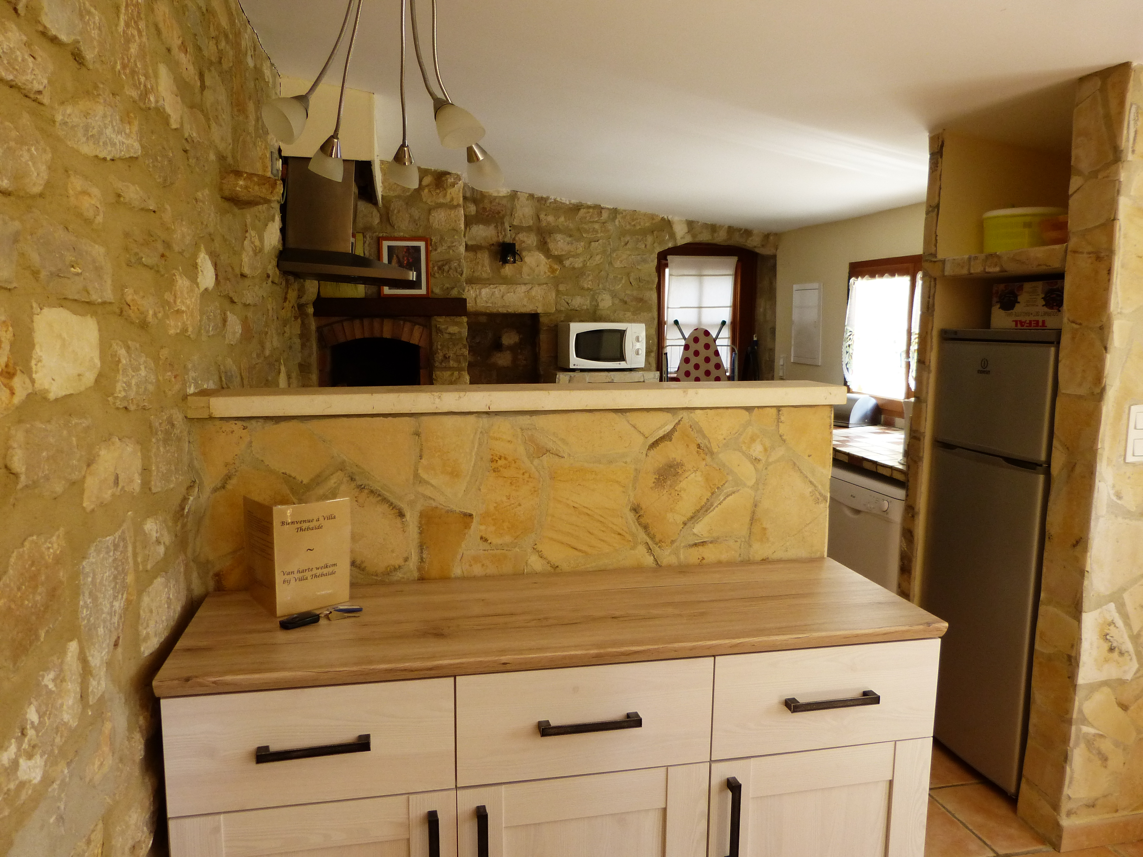 The kitchen is fully equipped: dishwasher, oven, microwave, coffee maker and Senseo, washing machine, and fridge-freezer.