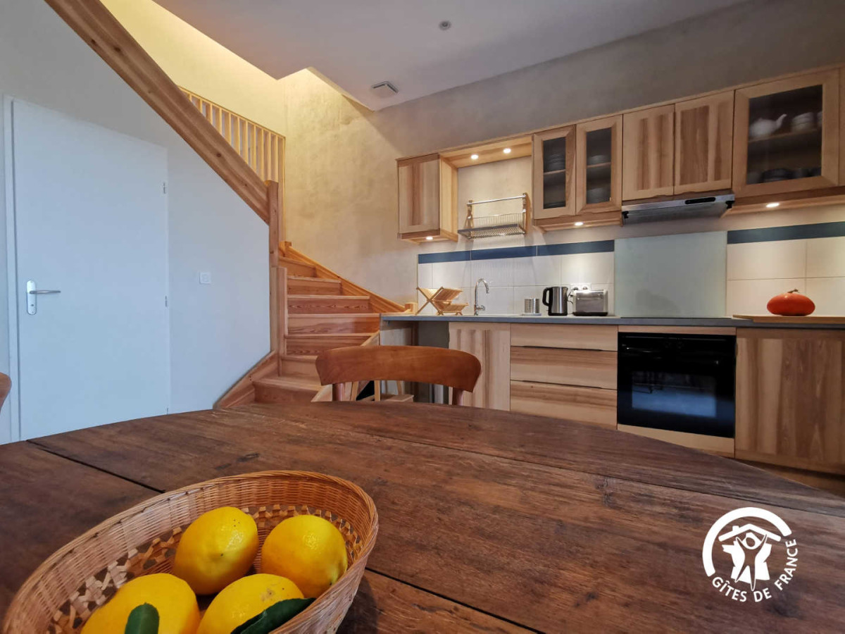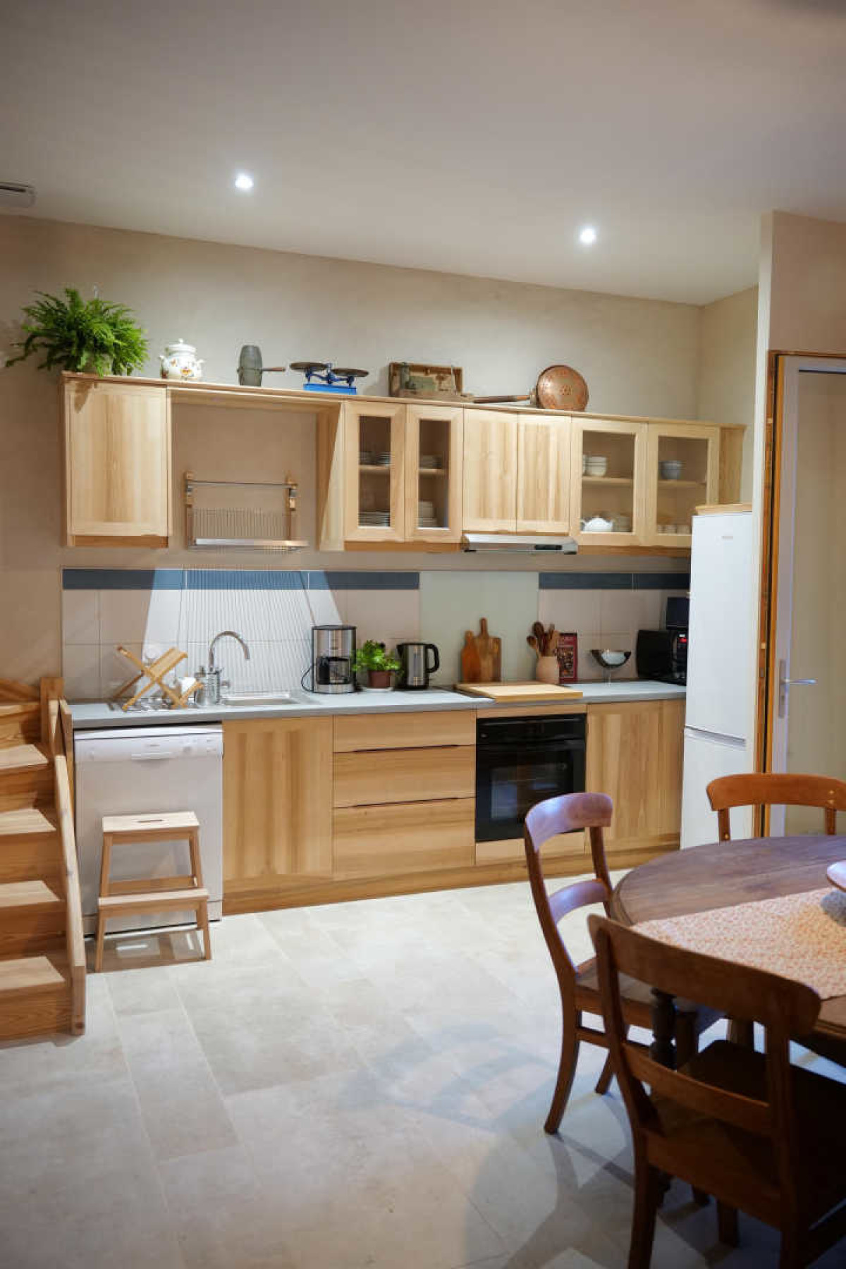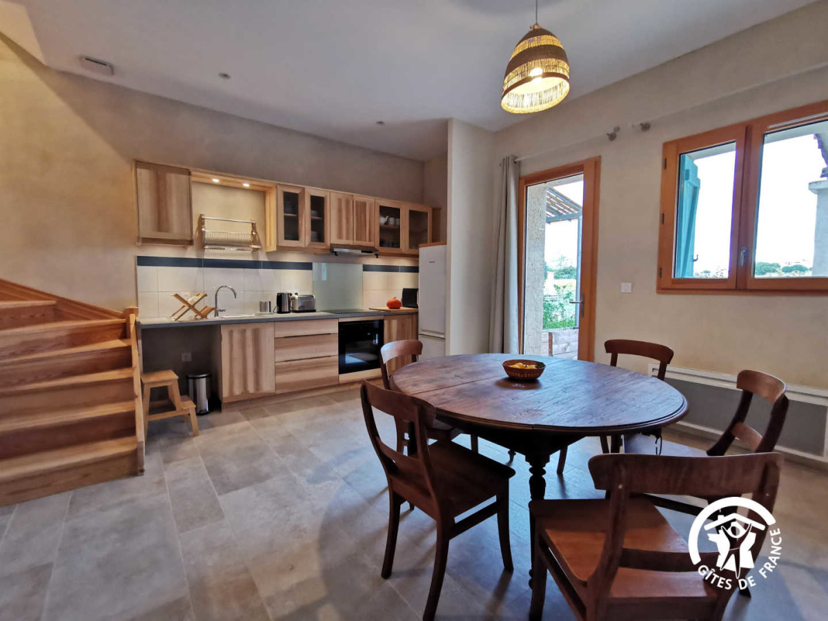 Kermès est un écogîte au cœur d’un domaine viticole, Le Domaine du Château de Stony, producteur de vins biologiques entre Sète et Montpellier, sur la commune de Frontignan Lapeyrade. Il a été rénové dans le respect du bâti ancien, avec des matériaux naturels et sains (bois, chaux, isolants biosourcés). Le gîte ” Kermès ” de 120m2 aménagé pour 8 personnes se compose : Au rdc : une pièce à vivre avec une cuisine et coin salle à manger et un salon. Ainsi qu’une terrasse privative face aux vignes. Une chambre en rdc adaptée et accessible pour les personnes à mobilité réduite, avec 1 lit 140×200 et une salle d’eau attenante. A l’étage vous trouverez 1 chambre avec 2 lits 80×200, une 3eme chambre avec 1 lit 140×200 et sur la mezzanine 2 lits 80×200 (possible en grand lit). De quoi lire et des jeux sont à disposition pour de bons moments en famille ou entre amis. A l’extérieur: profitez des extérieurs du domaine et du barbecue commun aux 3 gîtes. Depuis le domaine vous profiterez directement des chemins de garrigue à pied ou à vélo. Les vacanciers à vélos sont les bienvenus, la voie verte réaménagée est toute proche -1,8km/ Nous sommes labélissés “Accueil Vélo”. Il est aussi possible de louer des vélos sur place avec un prestataire local. L’occasion aussi de découvrir l’activité viticole. Les propriétaires proposent des visites de caves et la dégustation de leurs différentes cuvées si vous le désirez. Vous serez tout près des plages de Frontignan 10 min en voiture, de la belle ville de Sète à 6 km, au bord de l’Etang de Thau, de la mer méditerranée et des plages sauvages des Aresquiers, à 1 Km du Massif de la Gardiole et à 20 mn de Montpellier, ou encore de la cathédrale de Villeneuve les Maguelone, Pézenas, le Lac du Salagou… Electricité: 3kw/jour/personne inclus au tarif. Equipement bébé sur demande
