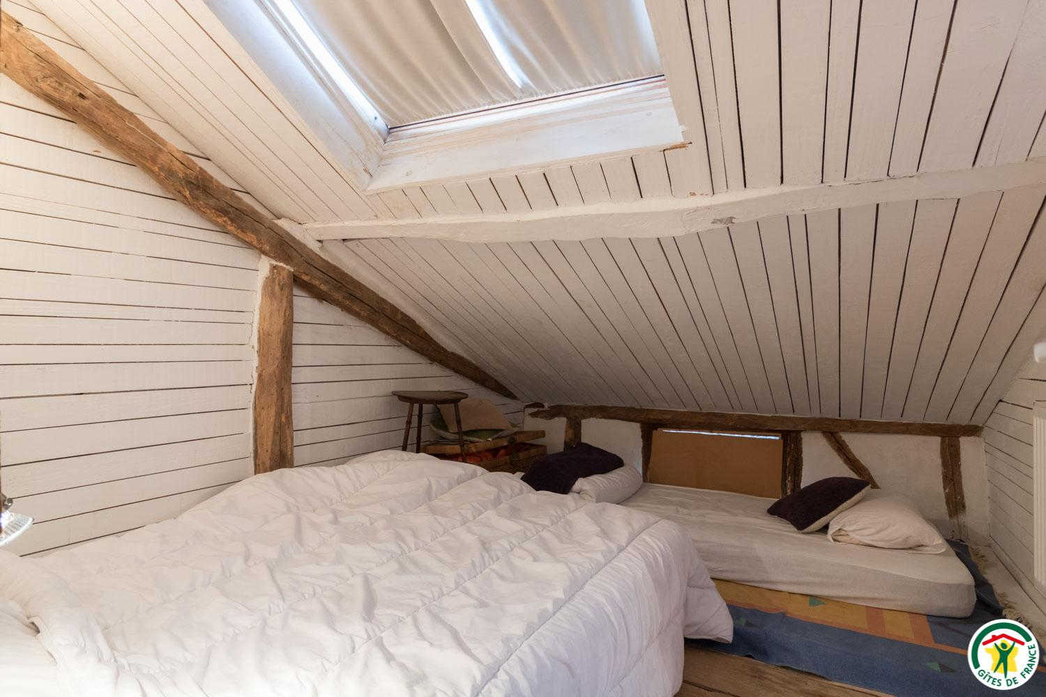 – En el segundo piso bajo las vigas: 1 dormitorio (1 cama doble de 140x190cm) y 1 pequeño dormitorio (1 cama doble de 140x190cm y 3 camas individuales de 90x190cm). Cada unidad (habitación o dormitorio) tiene su propio cuarto de ducha/WC, excepto en el segundo piso donde el WC es compartido.