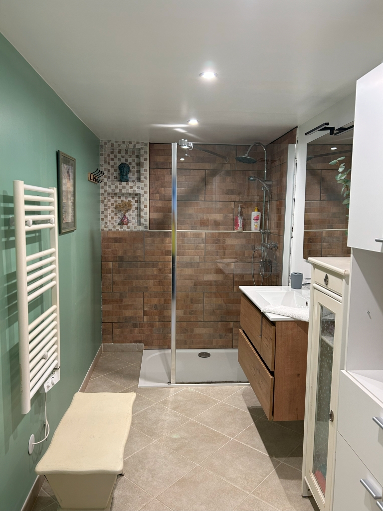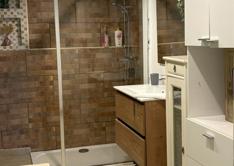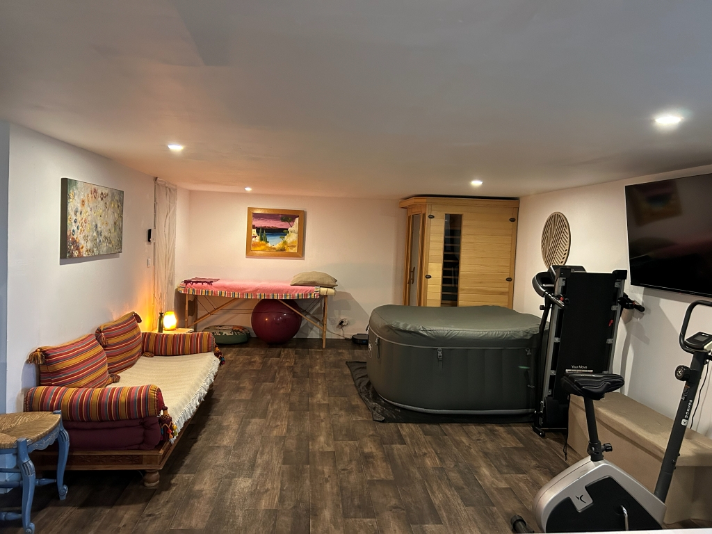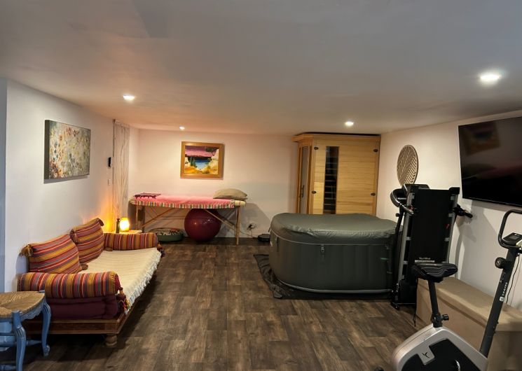 Cet appartement comprend : un séjour avec 1 lit banquette, un coin salon et un coin sport, un coin cuisine équipée, une chambre (1 lit 160) avec TV, une salle d’eau avec douche à l’italienne. Sauna, vélo d’appartement, tapis de marche et table de massage. Vélos électriques. Ouvert toute l’année. .