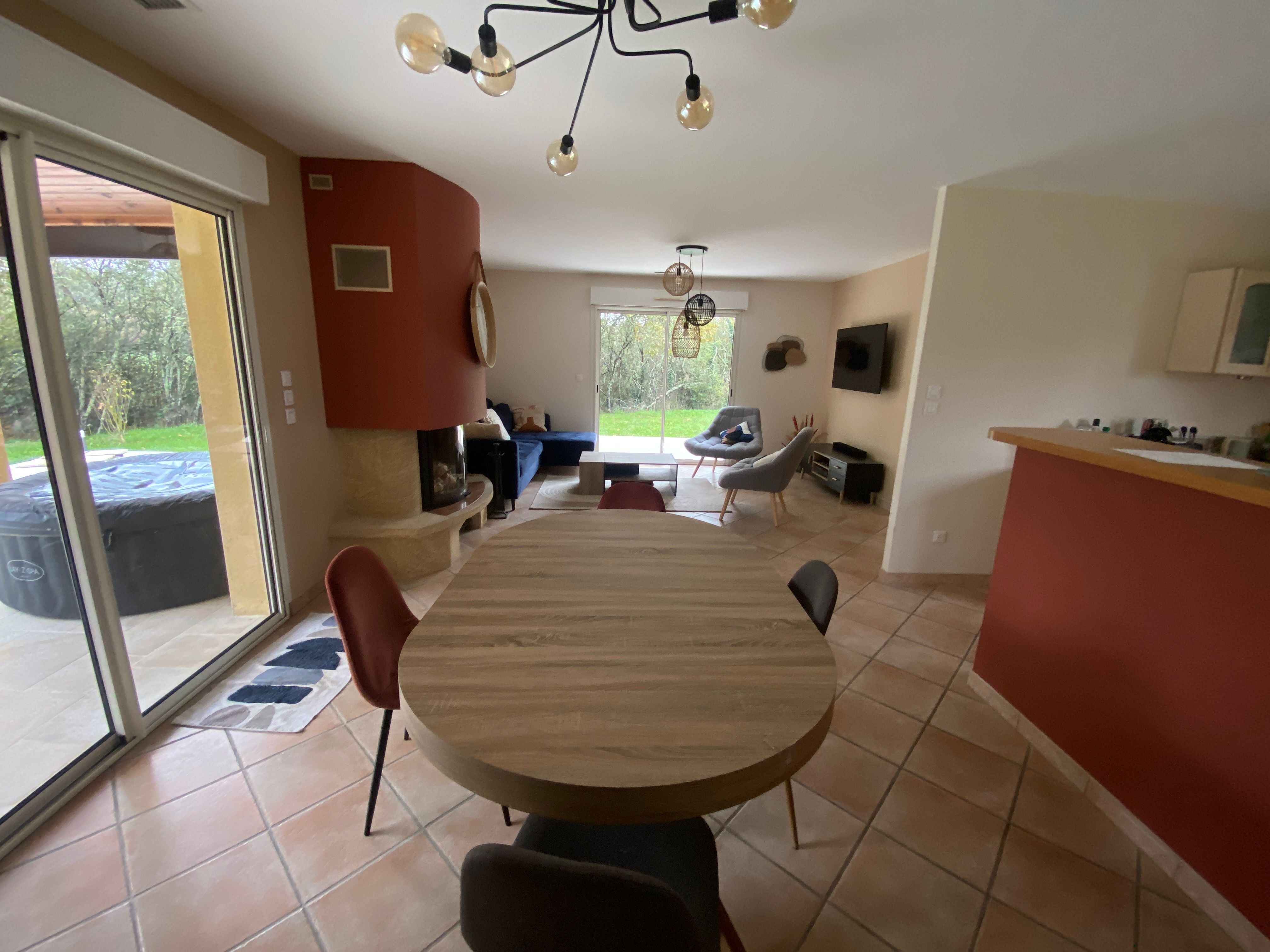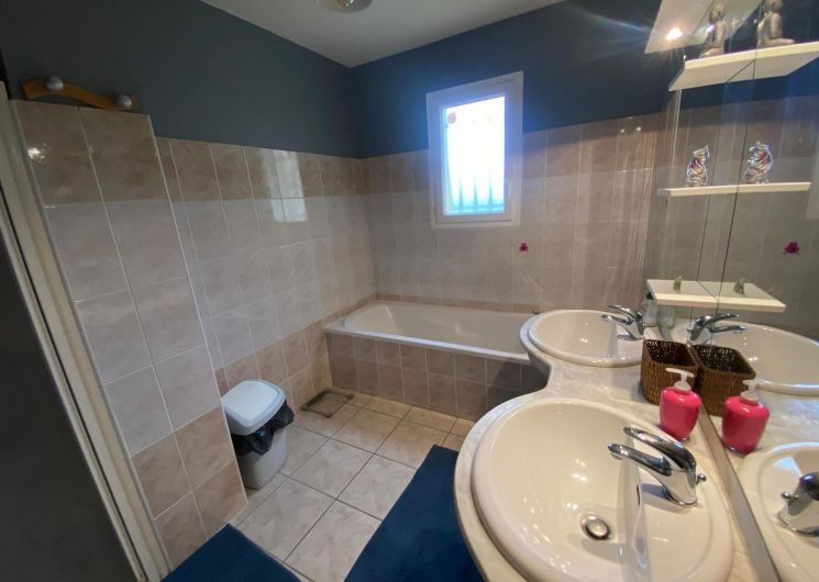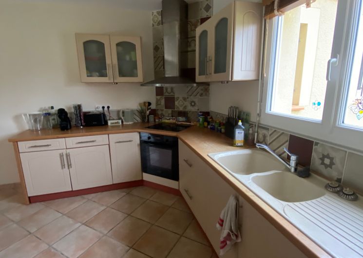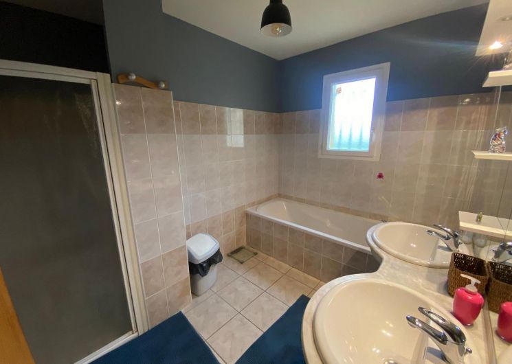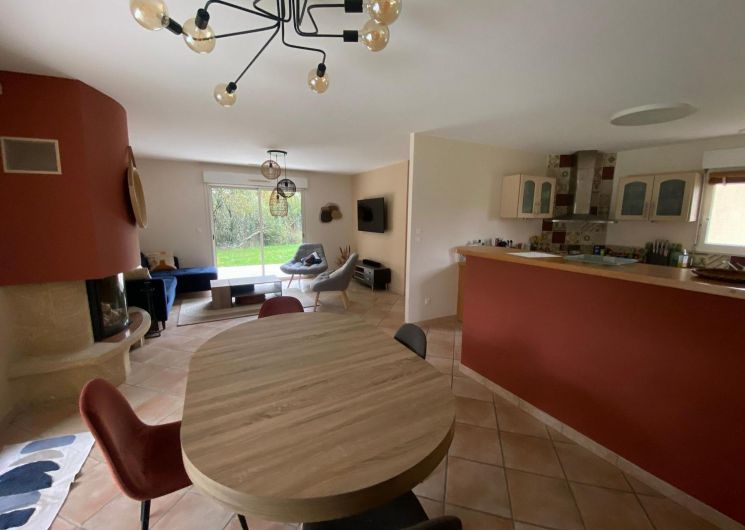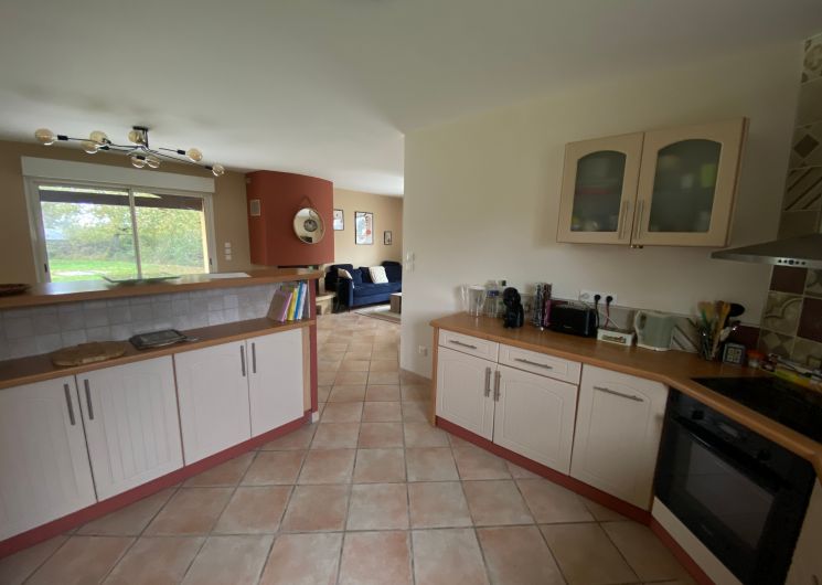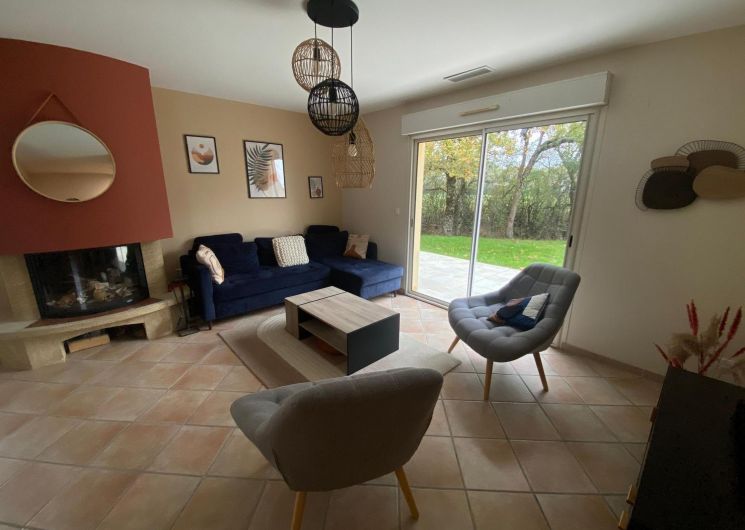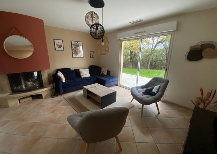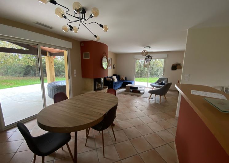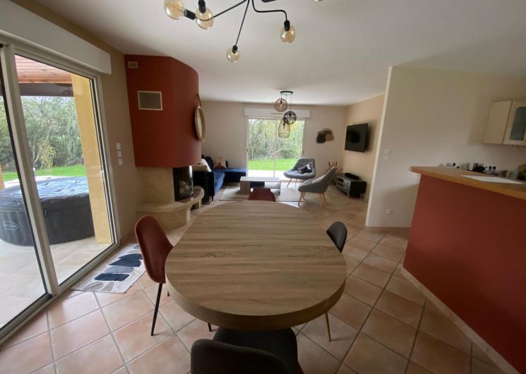 After a large, partly covered terrace, you enter the living room with its lounge (corner sofa, 2 armchairs, fireplace), wall-mounted television, dining area (table and chairs) leading to a fitted kitchen (dishwasher, fridge, hob, microwave), enclosed utility room (tumble dryer, washing machine, sink, freezer). A corridor leads to 3 bedrooms, 2 of which have 1 double bed (140cm) and 1 of which has 1 double bed (120cm). Bathroom with bath and shower, heated towel rail and separate WC. Terrace with garden furniture, 2-person spa. Unenclosed grounds. Wifi throughout, bed linen and towels provided as an optional extra.