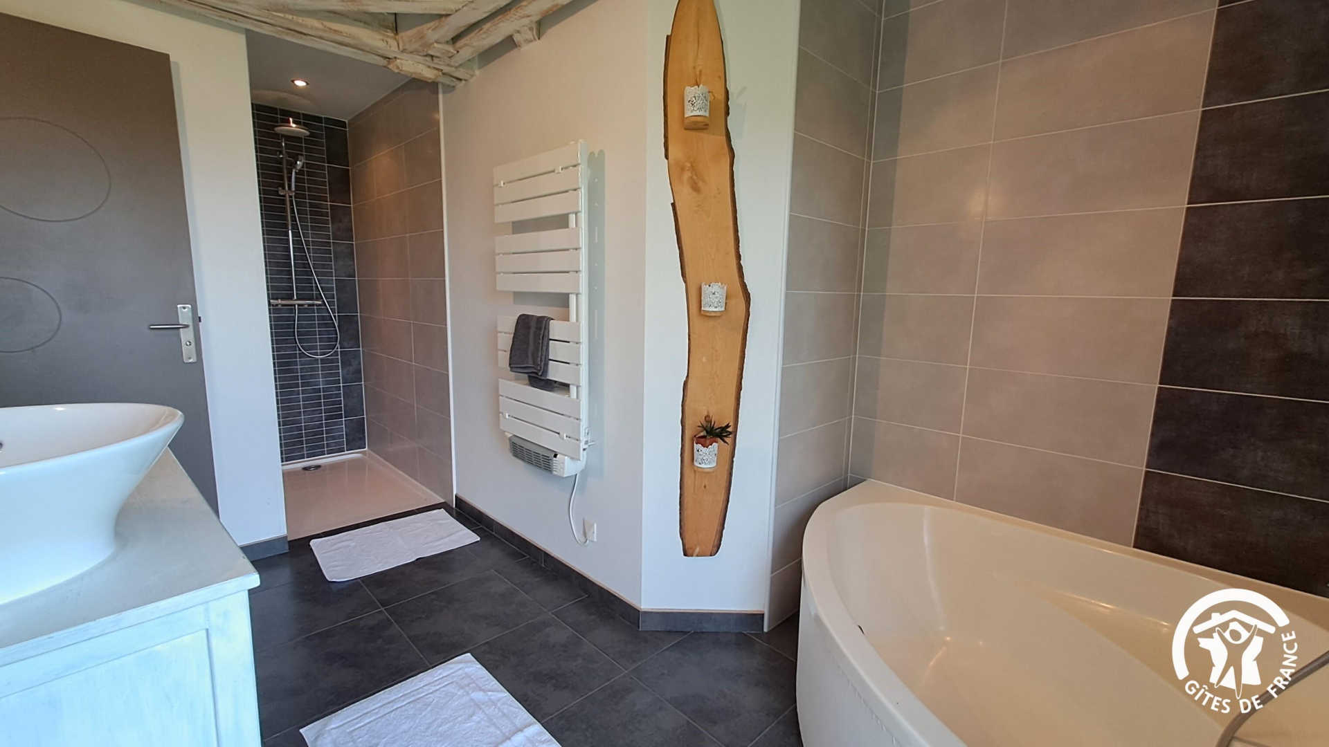 A l’étage : 3 chambres, 1 salle de bain (baignoire + douche) et 1 WC indépendant.