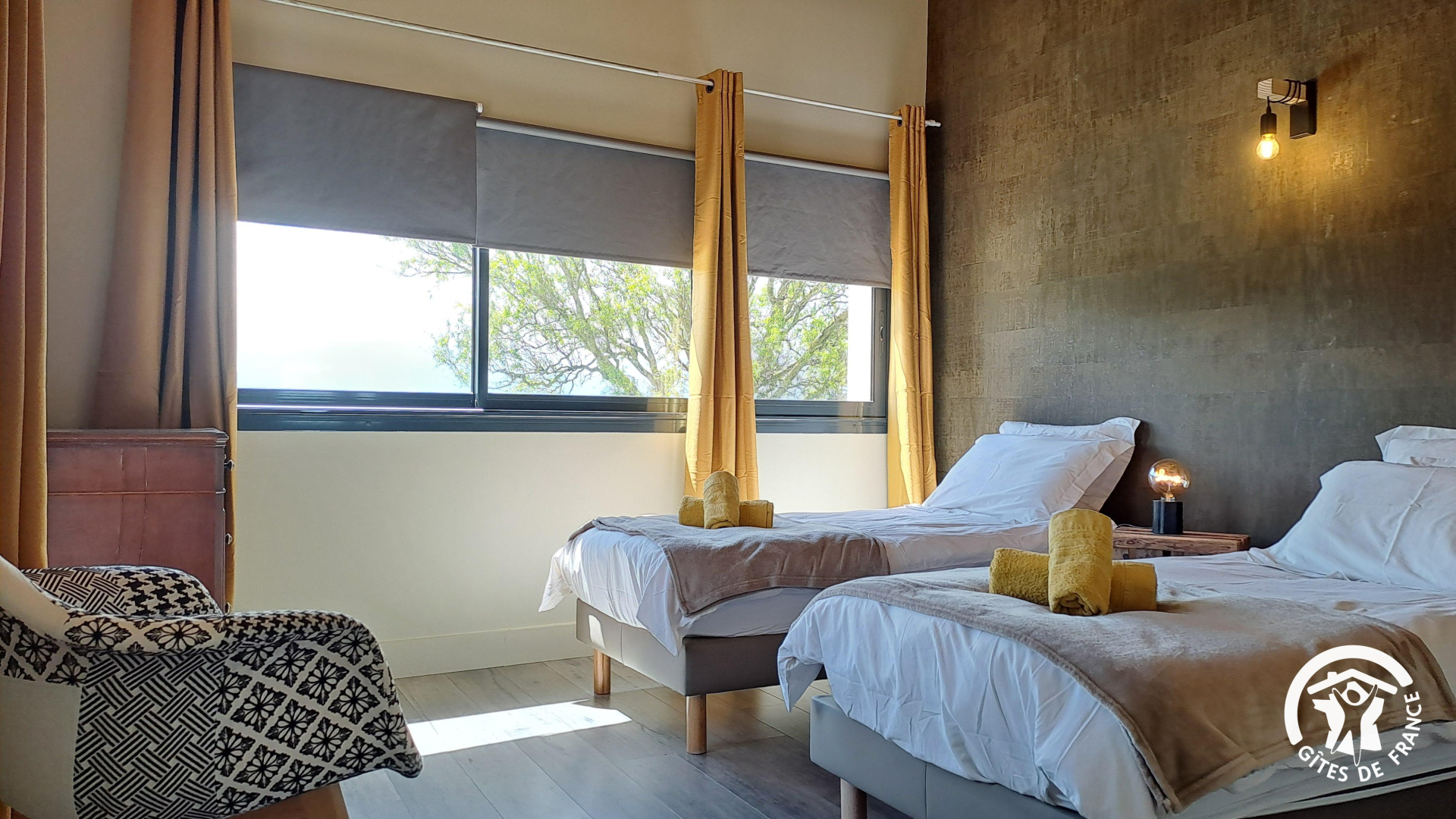 – chambre avec deux lits simples 90x190cm qui sont jumelables