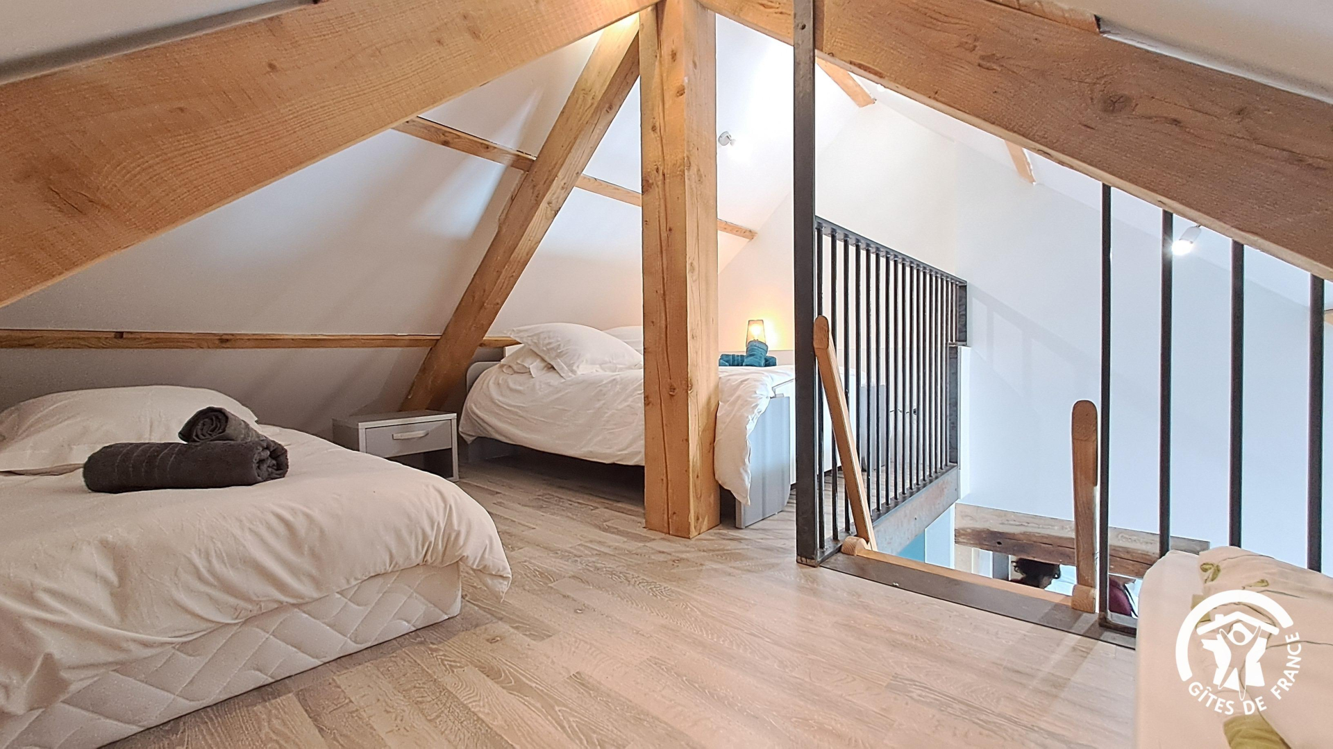 – une chambre idéale pour les enfants avec un lit double 140x190cm et sur la mezzanine au-dessus : un lit 140x190cm et un lit simple 90x190cm,
