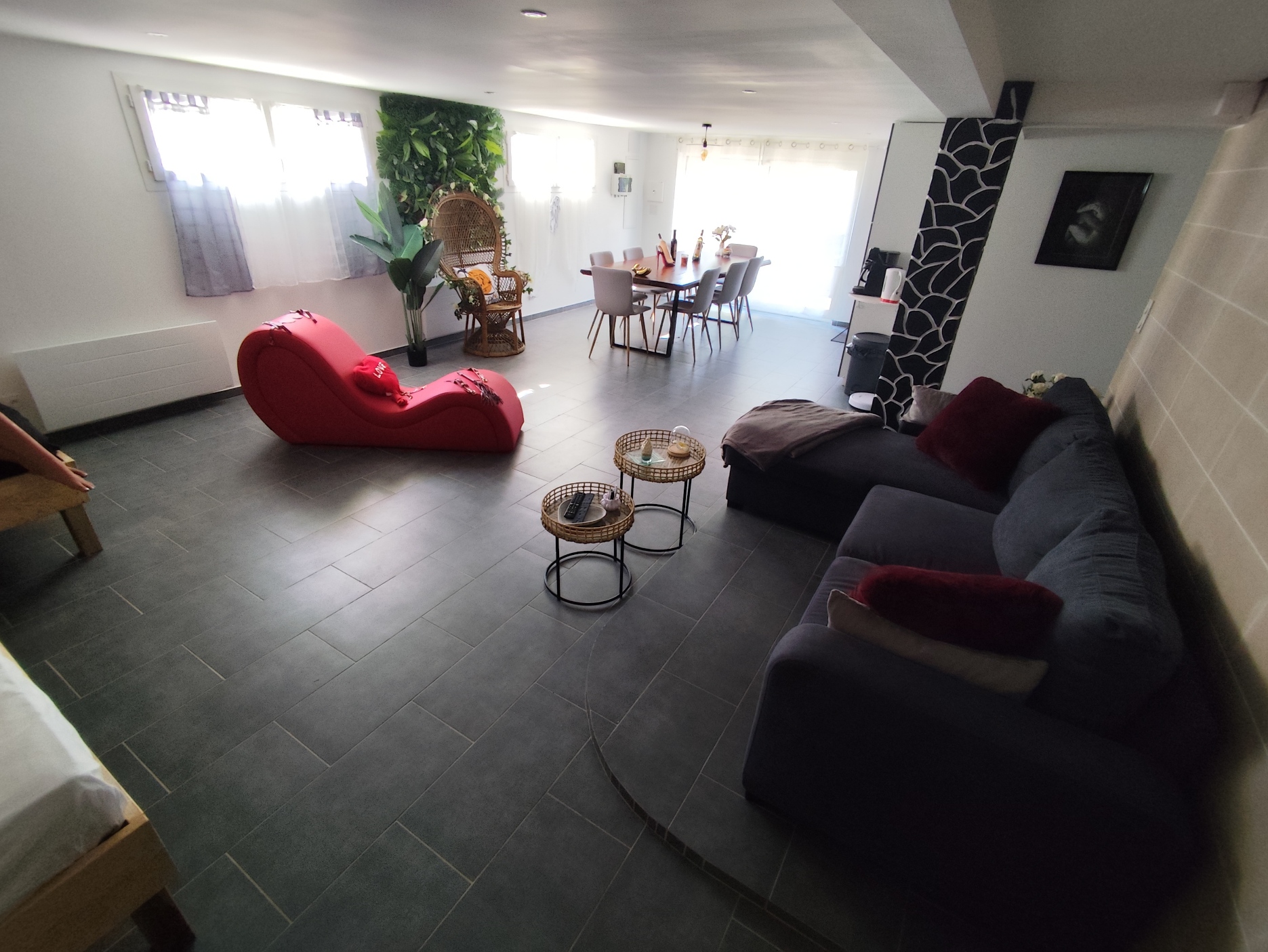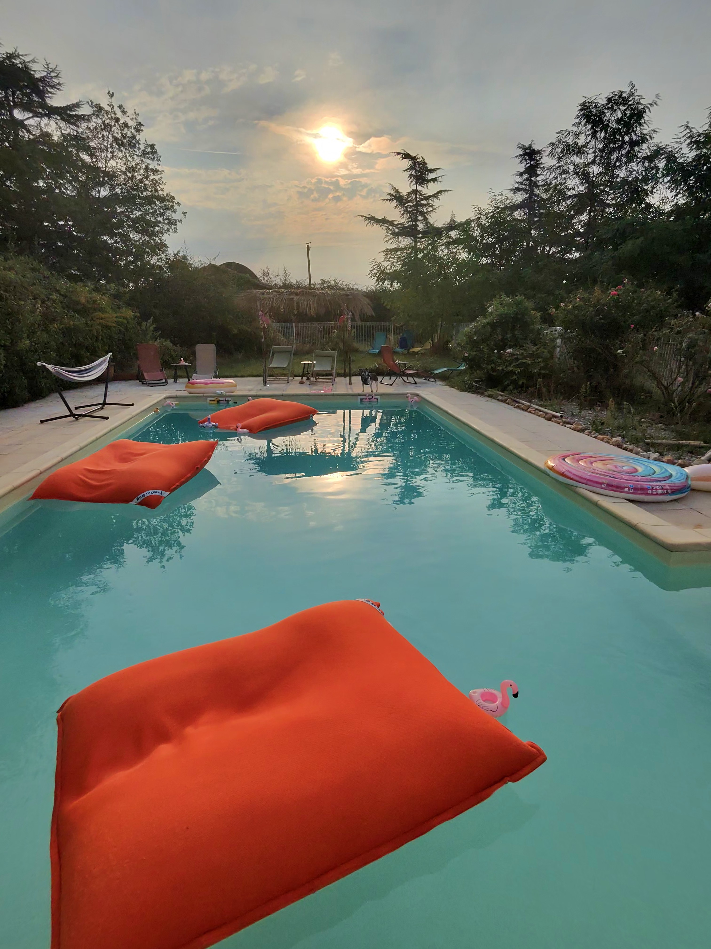 To make your stay as pleasant as possible, the living room is equipped with a sofa, large-screen TV, Jacuzzi (except during the summer) with Italian shower, dining room with fridge, solid wood table, fully-equipped kitchen, 10mx5 saltwater swimming pool (except during the winter), shower and 125m² terrace with duo sun loungers and deckchairs.