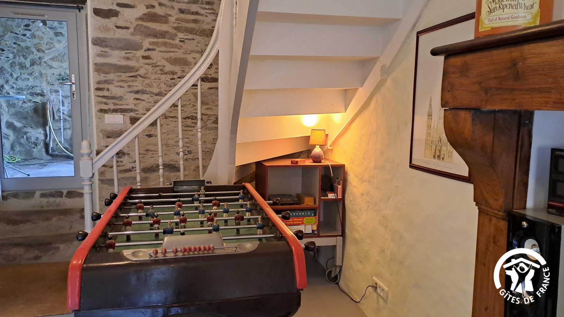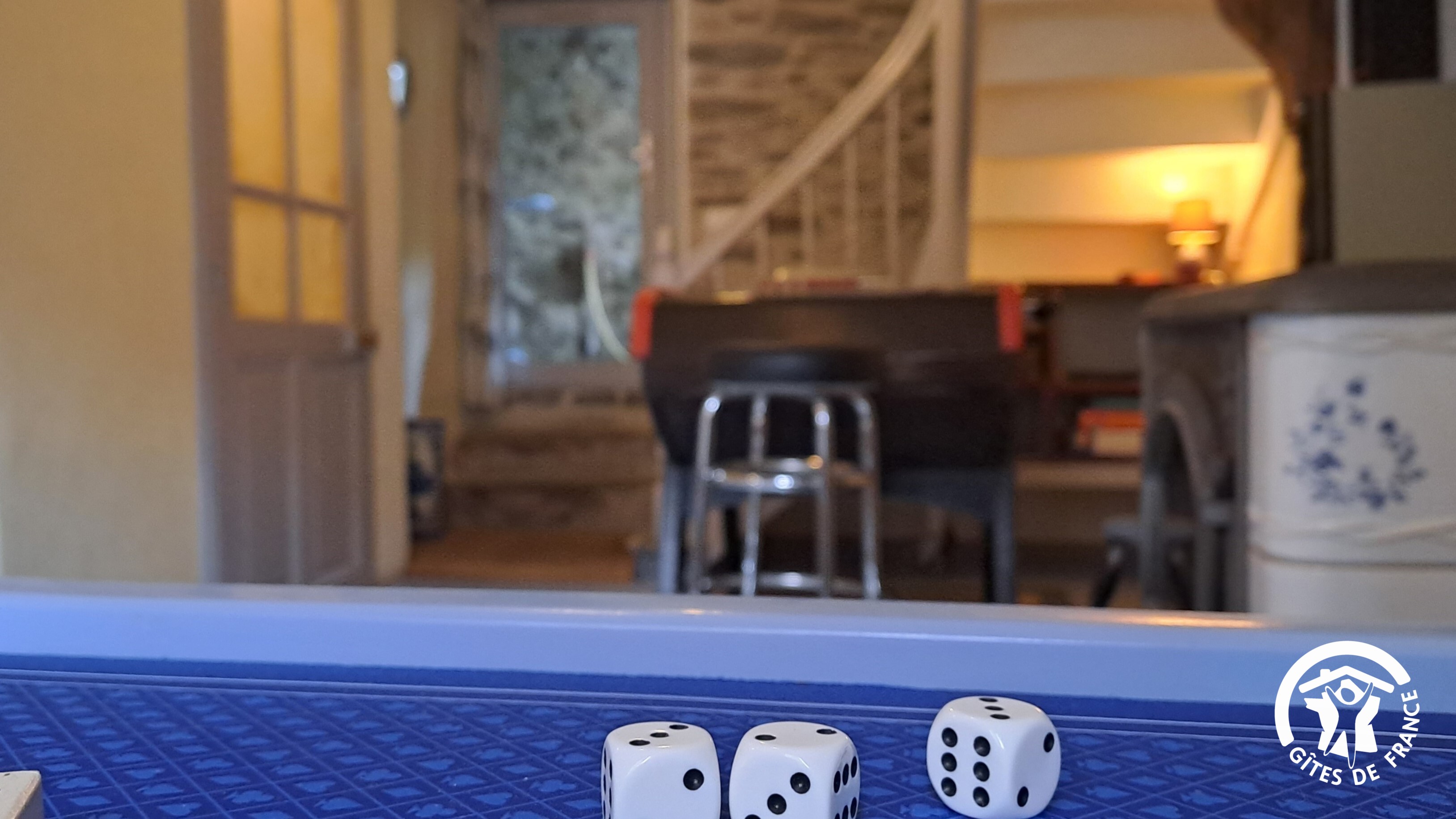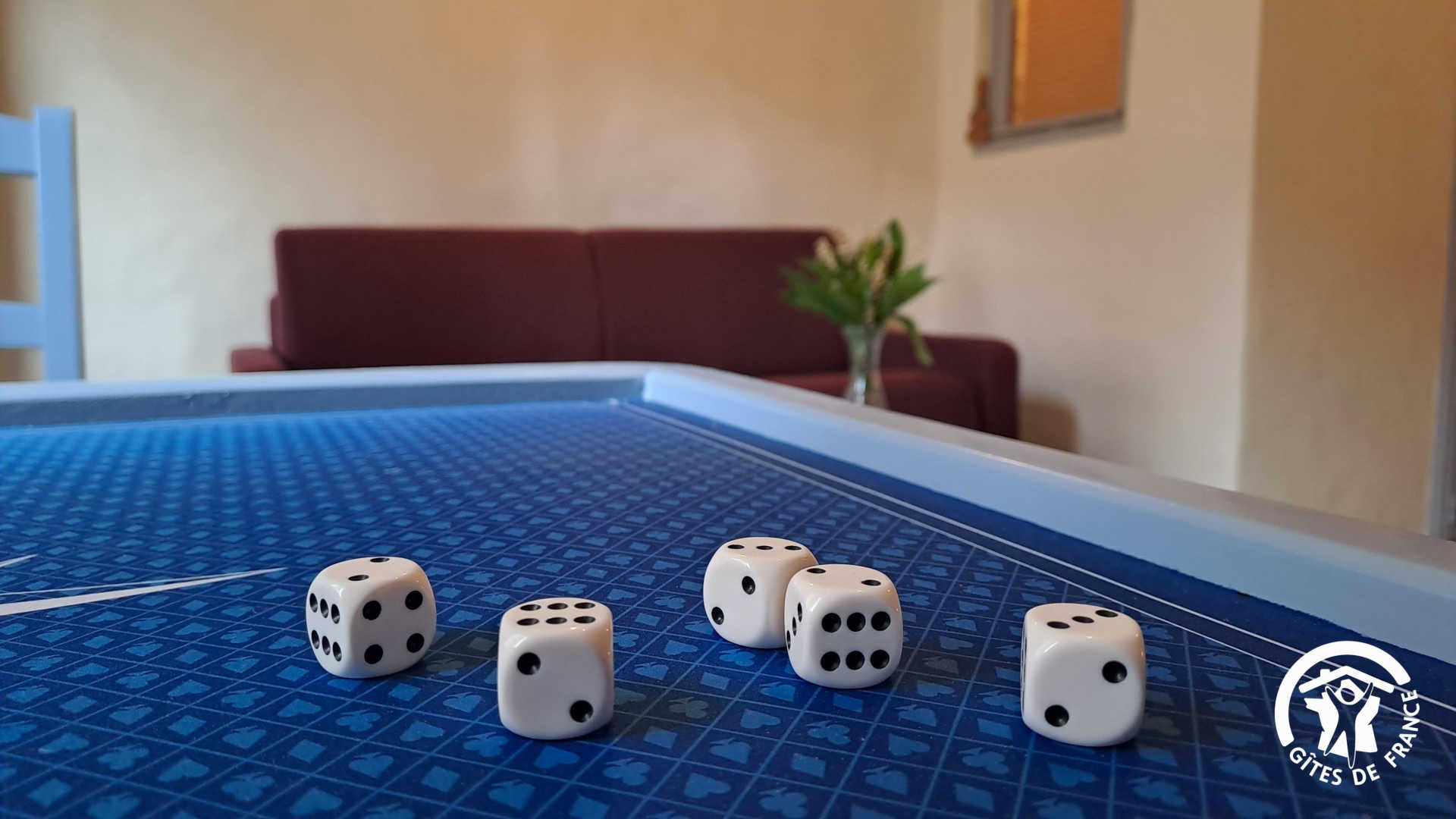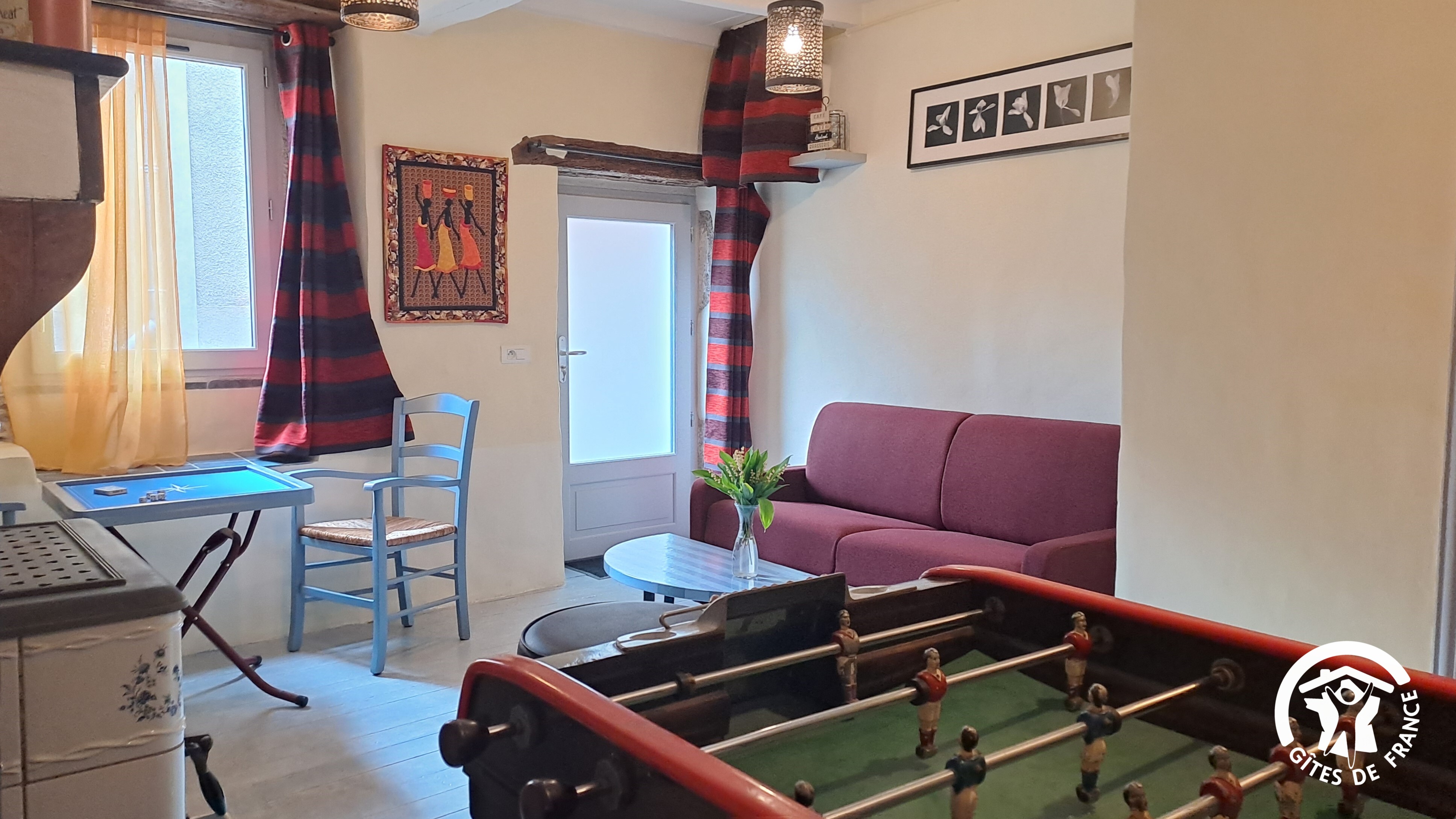 – Espace jeux et détente avec canapé convertible pour un couchage supplémentaire en 140x190cm, table de jeux de cartes/dés, babyfoot, jeu de fléchettes, miroir de plein pied, chaîne Hifi avec lecteur CD ou playlist sur votre Smartphone.