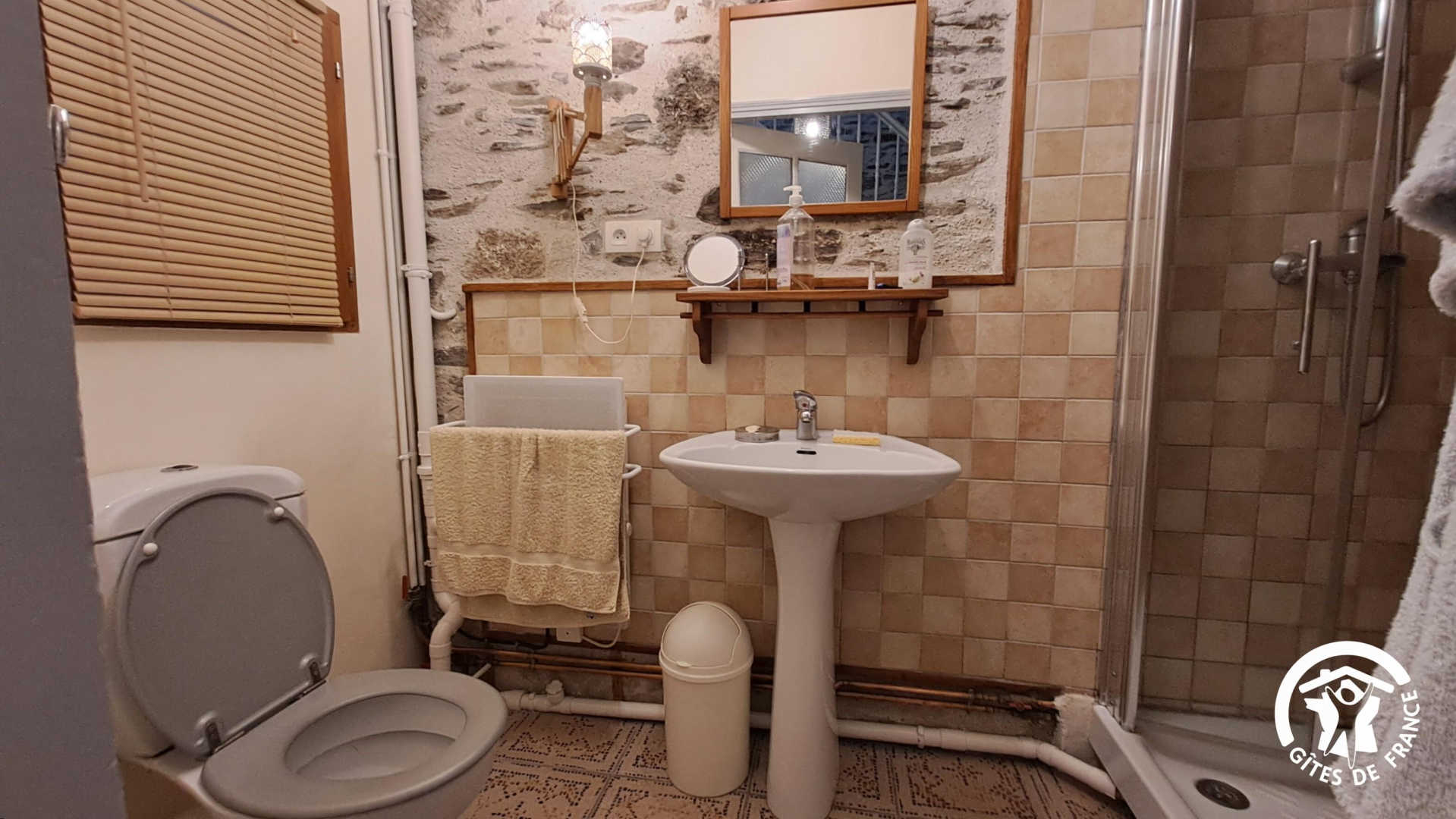– Salle d’eau avec douche, sèche cheveux mural, évier et WC.