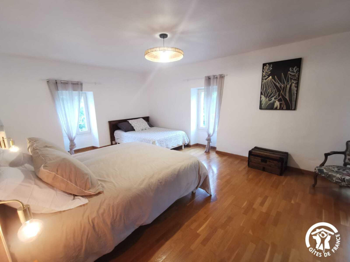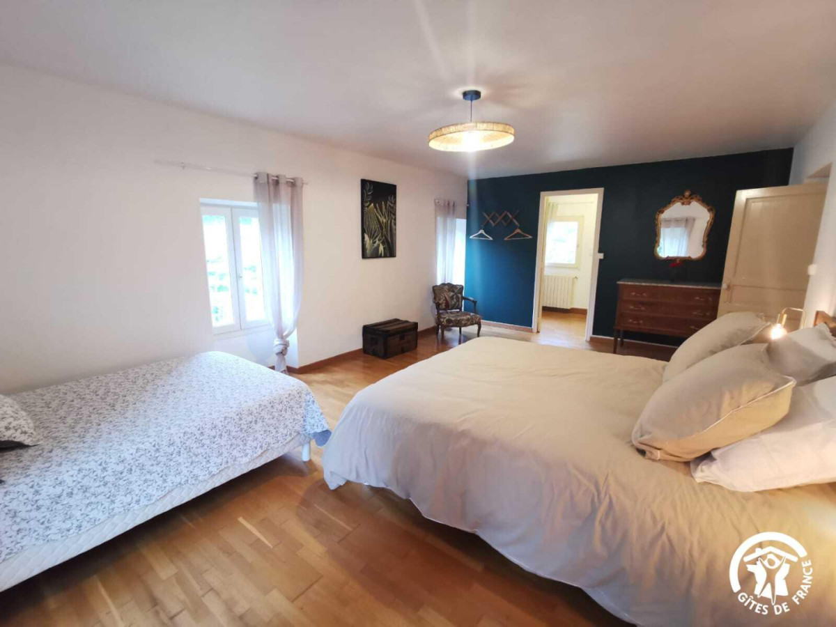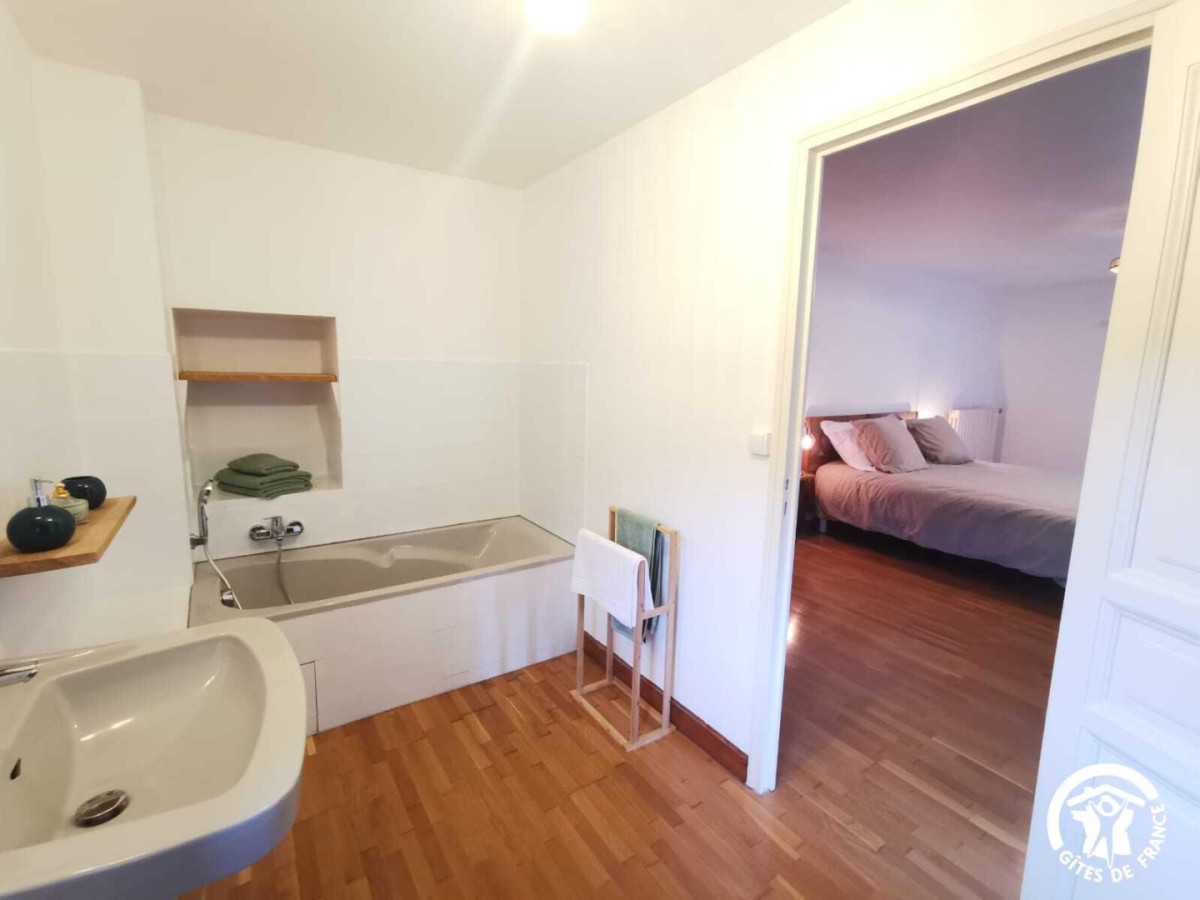 Au rez-de-chaussée, passé le hall d’entrée, vous pourrez profiter d’un espace salon avec deux canapés et d’un espace salle à manger et cuisine pour déguster de délicieux petits-déjeuners confectionnés par vos hôtes : croissants, viennoiseries, pains, confiture, yaourts, fruits du jardin et jus de fruits, café, thé… Par beau temps, vous pourrez également déguster votre petit-déjeuner sur la terrasse extérieure de la maison d’hôtes, sur une table spécialement préparée pour vous par vos hôtes. A l’extérieur, vous pourrez profiter d’un bel espace jardin commun avec vue directe sur la rivière à deux pas, un endroit parfait pour vous reposer et profiter du soleil de l’Hérault et de la fraîcheur de Lunas ! A noter qu’il est possible de garer des vélos et des motos dans le garage de la chambre d’hôtes. Animaux acceptés sous certaines conditions, merci de contacter la centrale de réservation au 04.68.11.40.70. Attractions touristiques : Commencez par faire un tour dans le charmant village de Lunas, un village de caractère avec un riche patrimoine historique et naturel, comme en témoigne par exemple son château ; découvrez les ruelles pittoresques du village lors de randonnées, de visites commentées ou encore lors du parcours patrimonial ” 2000 ans à Lunas ” ou du parcours Gardien de Rivière, un parcours aménagé dans un parc près de l’eau où se mêle découverte d’un verger et parcours pédagogique sur le thème de la faune et de la flore locale. Découvrez également la ville de Lodève, labellisée Ville et Pays d’Art et d’Histoire avec sa culture et son histoire en visitant des lieux tels que la cathédrale gothique méridionale de Saint-Fulcran, datant du XIIème siècle, ou encore le musée Fleury de Lodève et ses collections d’art moderne, d’archéologie et de sciences naturelles. Déambulez dans cette ancienne cité épiscopale avec ses hôtels particuliers de marchands drapiers, ses ponts anciens, sa manufacture nationale de draps et tapis d’exception… A une vingtaine de kilo – Dans cette chambre située au deuxième étage agréablement décorée dans un style élégant et épurée pouvant accueillir de deux à quatre personnes, vous retrouverez deux lits doubles, avec lampes et tables de chevet, un fauteuil et une commode de rangement avec un miroir, ainsi qu’une salle d’eau avec WC, baignoire et vasque avec miroir.