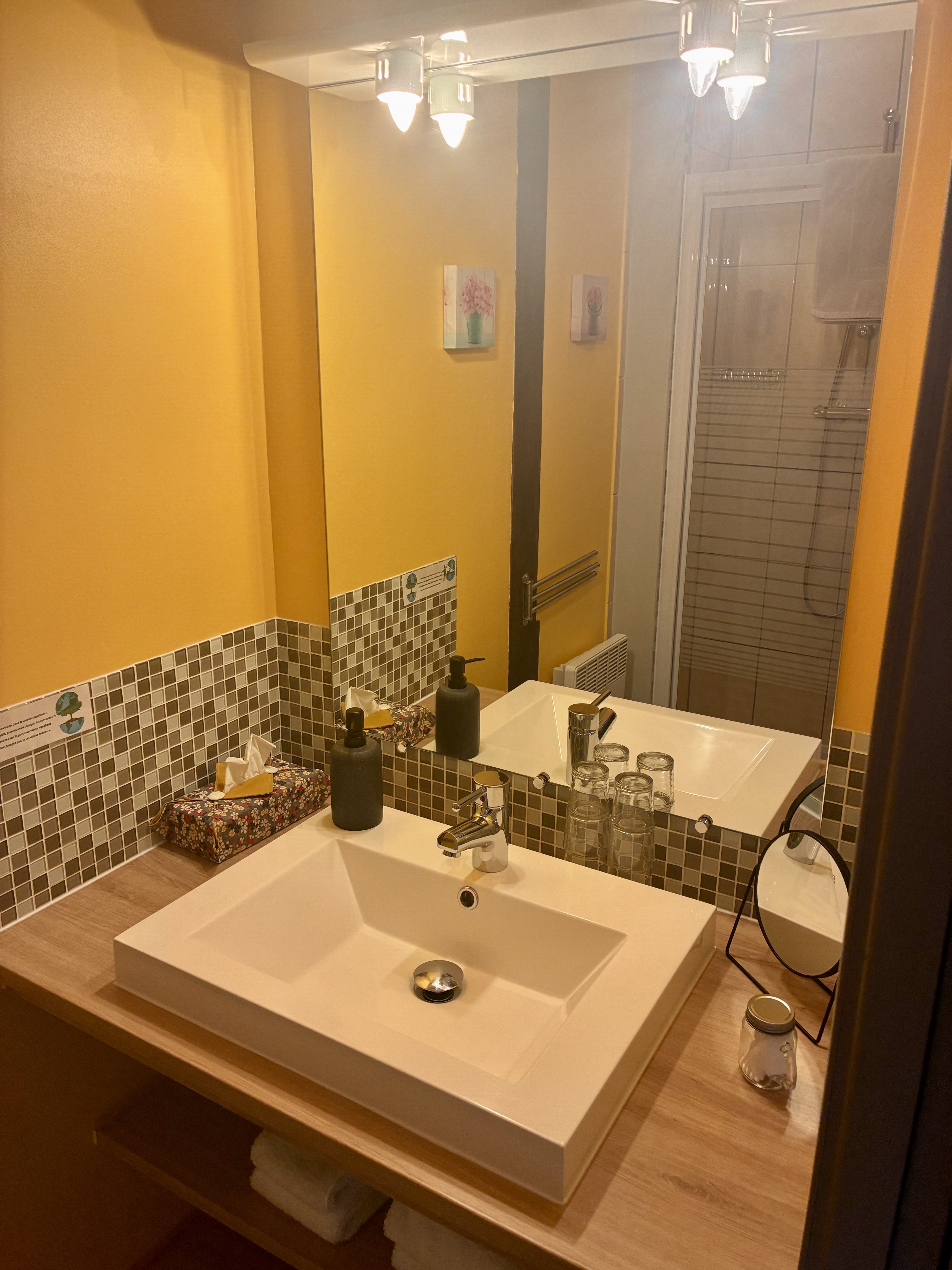 Françoise y Alex le dan la bienvenida a la habitación Riquet, situada en el segundo piso de una hermosa casa de viticultor en el Faugèrois, en el límite del Parque Natural del Haut Languedoc. Esta habitación de 27 m2 le ofrecerá una cama de 160 cm, una litera de 90 cm, aire acondicionado reversible, cuarto de ducha y WC separado, wi-fi y secador de pelo. Después de una buena noche de sueño, le esperamos para un desayuno continental.