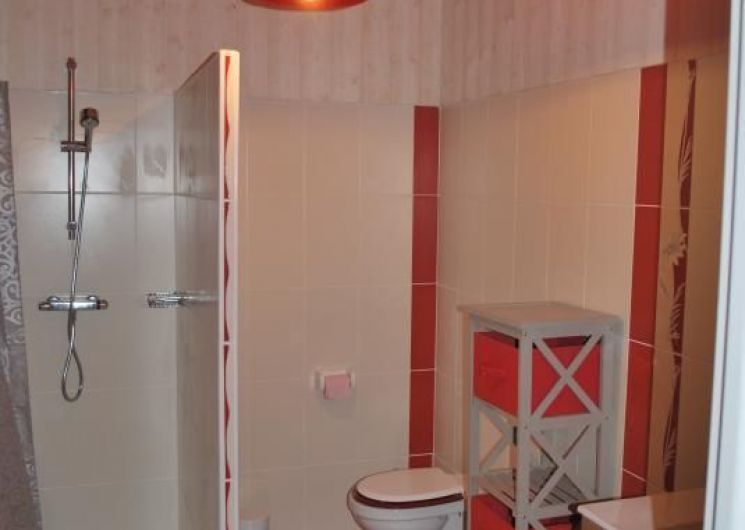 Séjour (1 convertible 2 pers), salon / salle à manger, cuisine, buanderie, WC/lave-mains. A l’étage : 1 ch avec salle d’eau privative (1 lit 140), 1 chambre (1 lit 140, 1 lit 90), 1 chambre (1 lit 140), salle d’eau/wc, 2 terrasses dont 1 couverte.