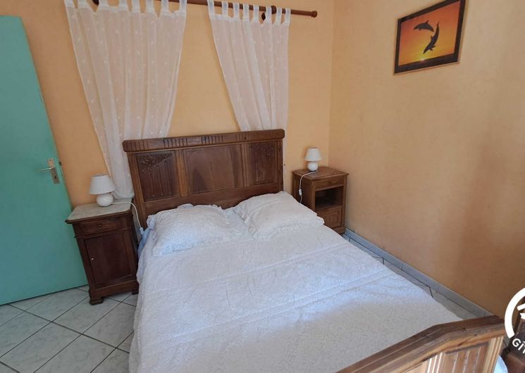 Séjour avec coin-cuisine toute équipée, coin salon (fauteuils), 2 chambres (un lit double en 140×190 dans chacune), salle d’eau récemment rénovée, wc.