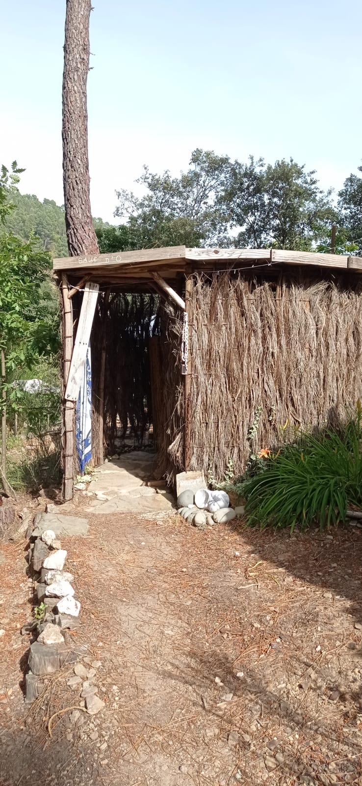 Car sur cette chère Colline partagée avec les voyageurs à la belle saison, tout est pensé et réalisé en vue de sauvegarder les ressources naturelles. Dans ce sens aussi, la capacité d’accueil de la Colline vagabonde d’un maximum de 11 personnes évite un impact trop important sur le petit hameau. Il faut dire que c’est un vrai paradis ! Au cœur d’un méandre dessiné par la rivière, entre pins et châtaigniers !