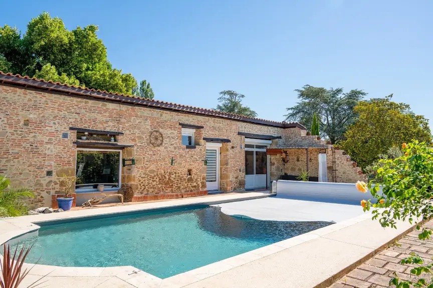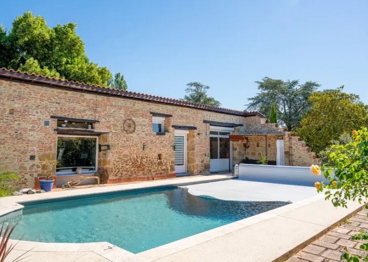 Vous accèderez à la piscine et au sauna par une allée qui vous mènera sur une terrasse plein sud avec vue sur les Pyrénées.