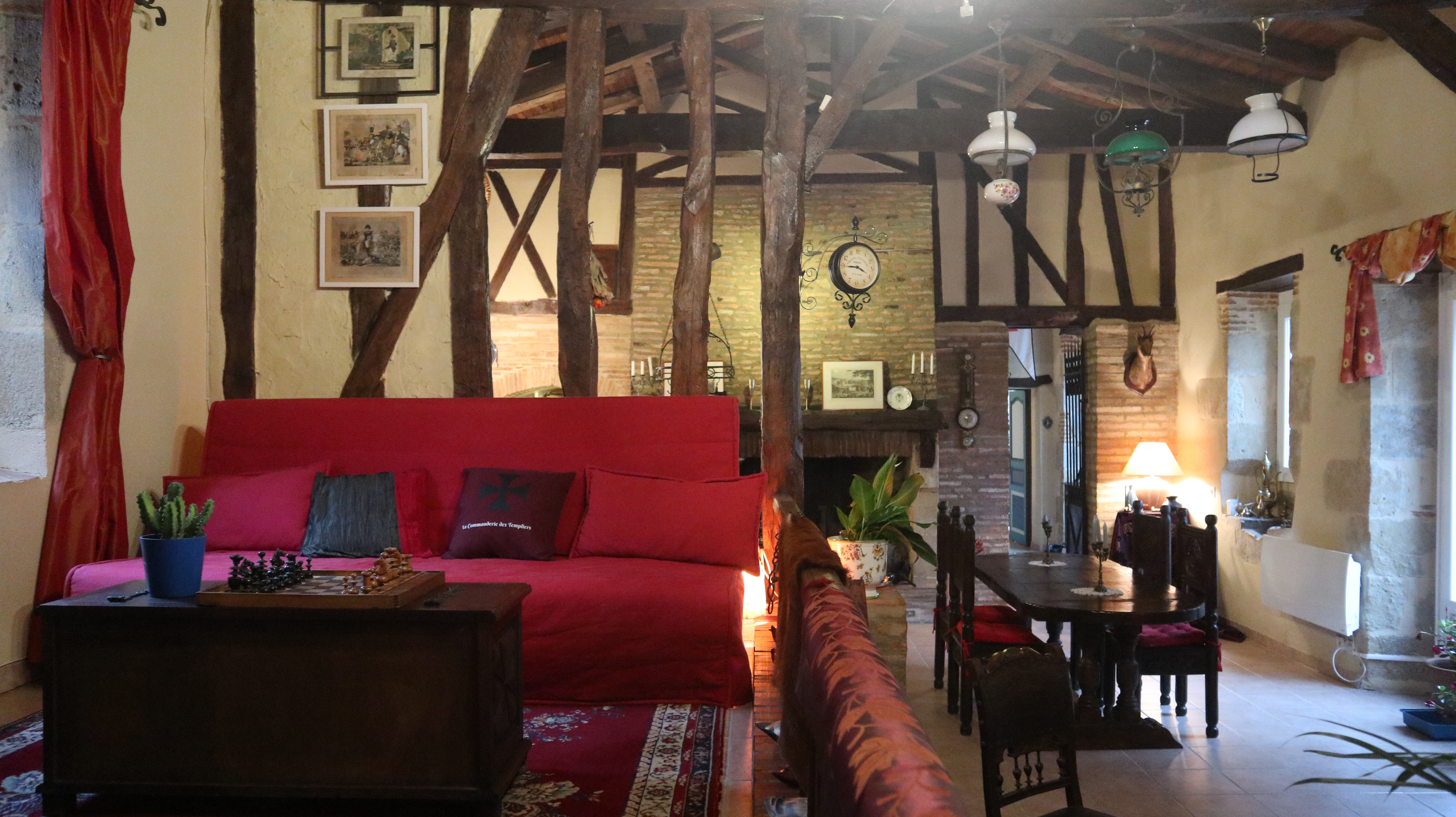 Dans une aile du « Château », nous avons restauré l’ancienne Commanderie des Templiers dans le respect des matériaux d’époque : murs en pierres, haute charpente de bois, grande cheminée dont la plaque est datée de 1302.