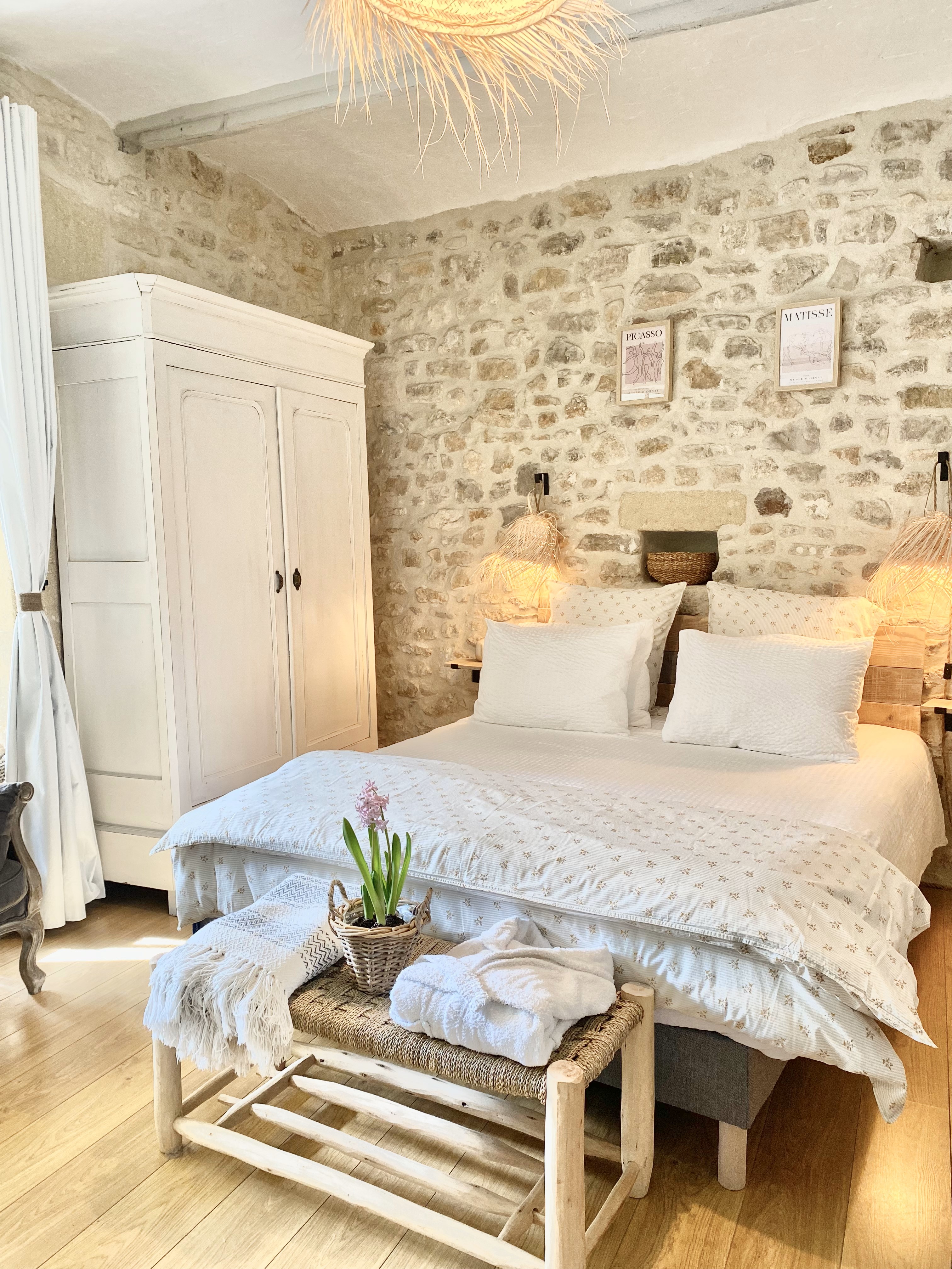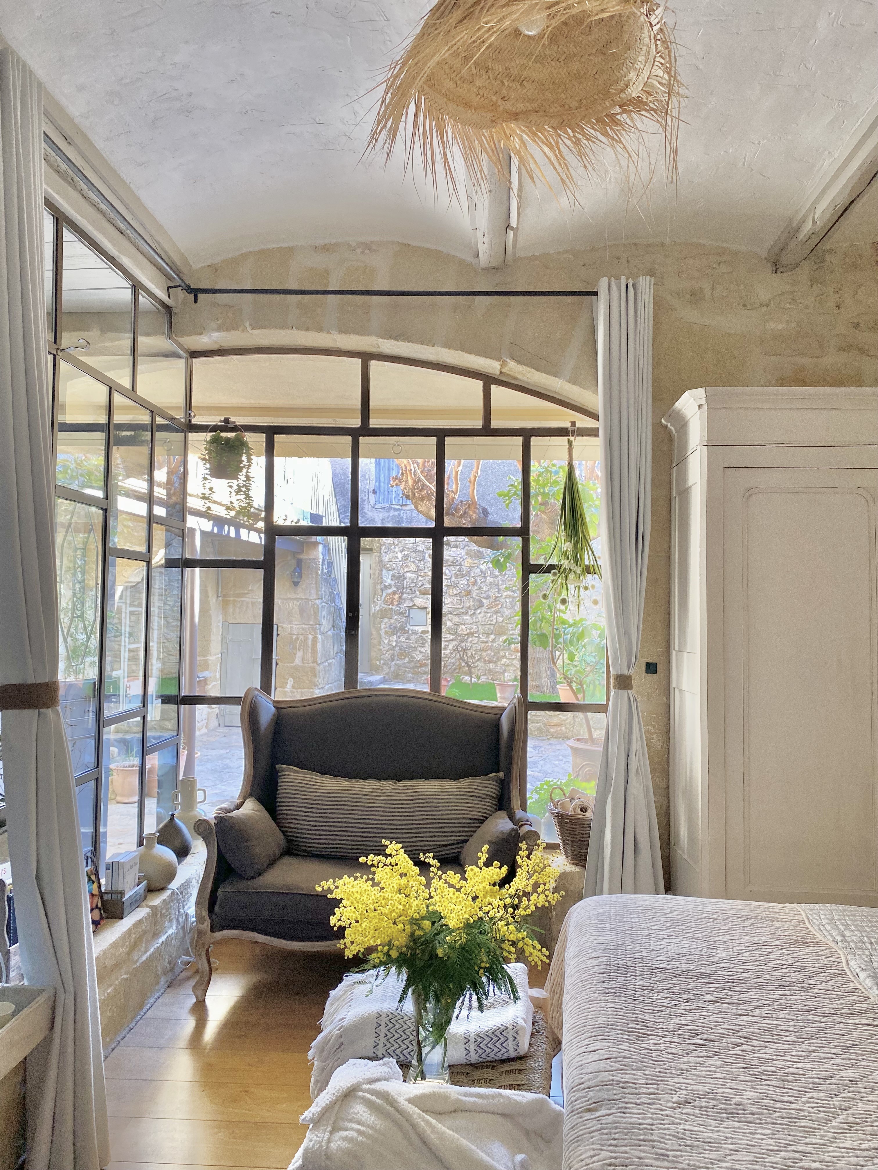 La Dame Jeanne is a charming bed & breakfast in the countryside, an enchanted interlude with an unoverlooked courtyard planted with trees and flowers. A former wine farm, it has been restored in a chic country style with soft colors.