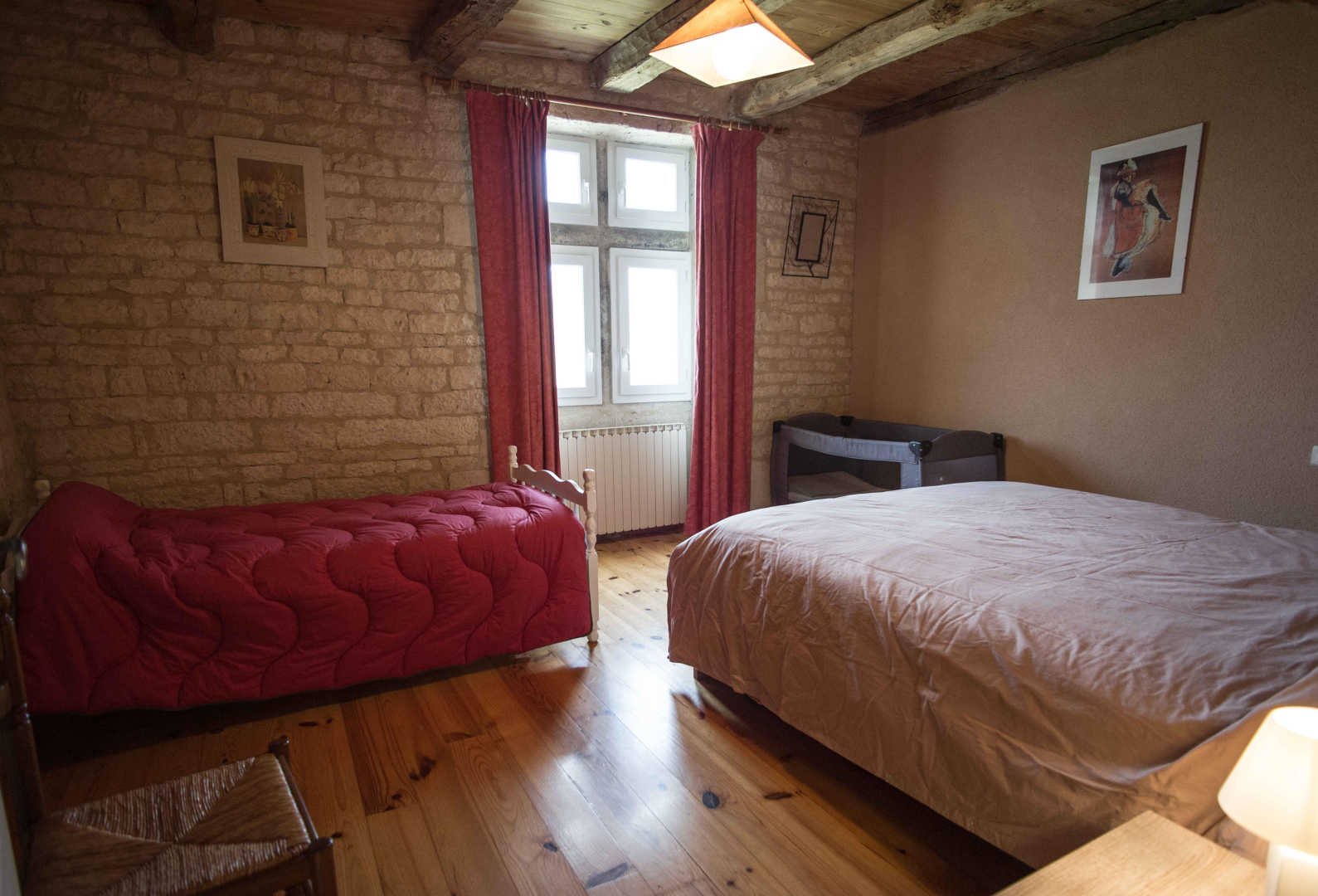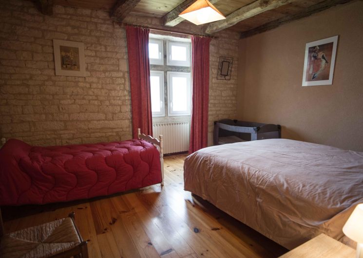– A l’étage : 3 chambres (deux lits doubles, trois lits simples), salle de bains, cellier, wc.