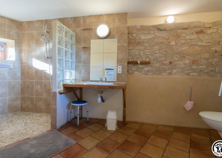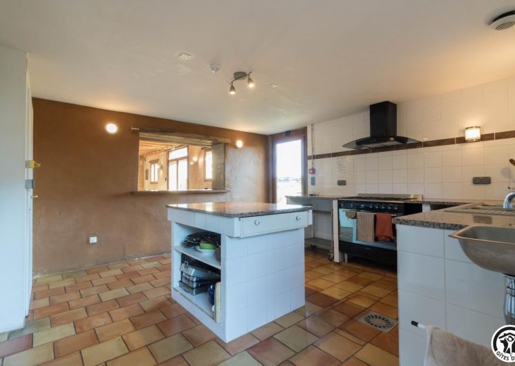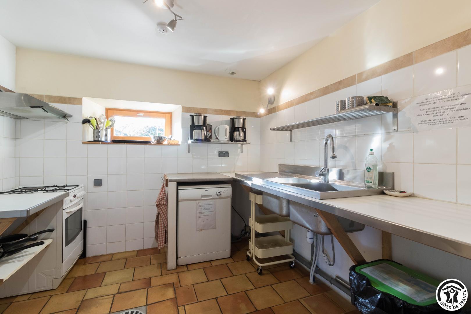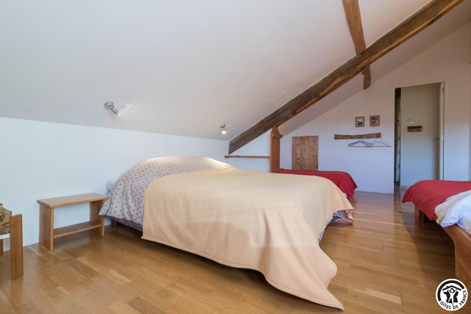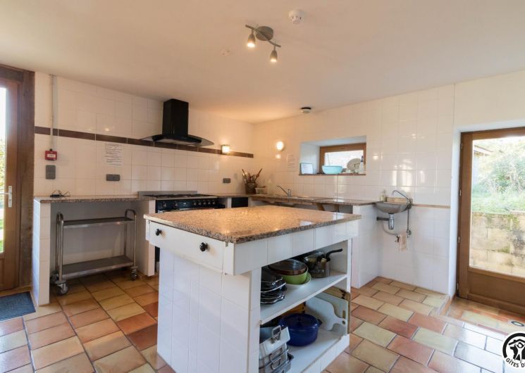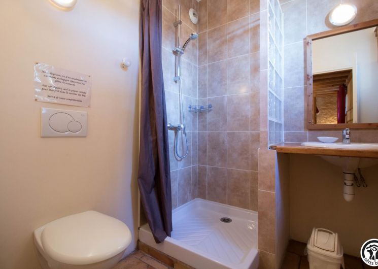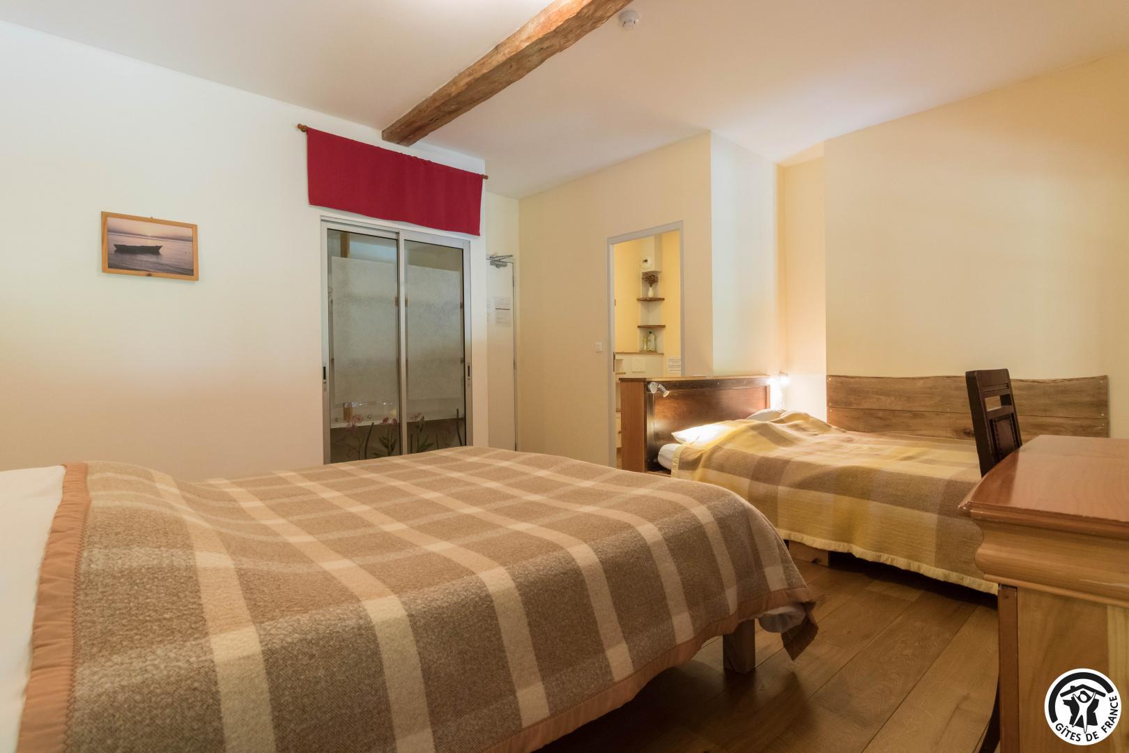 – Planta baja: salón – 2 cocinas – habitación PMR (2 camas gemelas de 80*20cm) – habitación de 4 camas (1 cama de 160*200cm + 2 literas de 90*190cm).