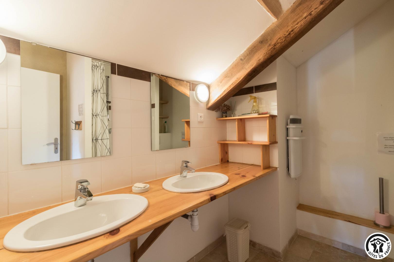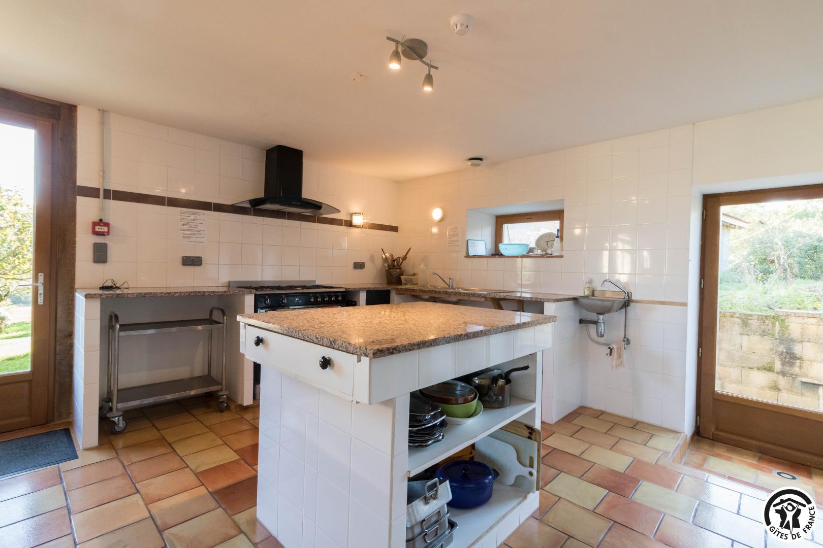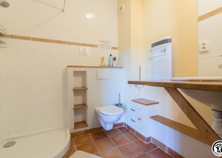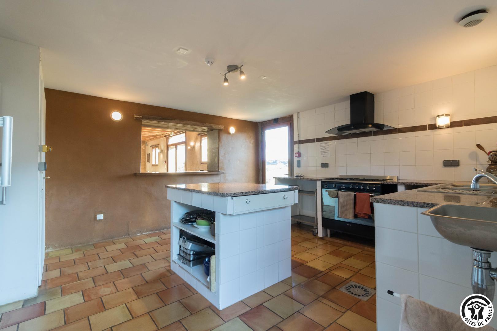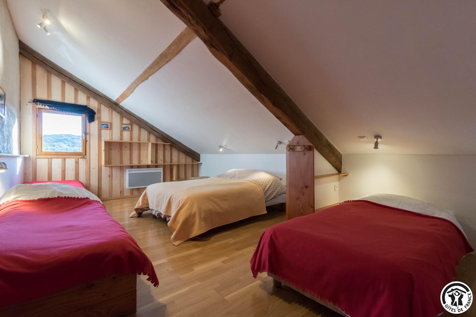 – Planta baja: salón – 2 cocinas – habitación PMR (2 camas gemelas de 80*20cm) – habitación de 4 camas (1 cama de 160*200cm + 2 literas de 90*190cm).