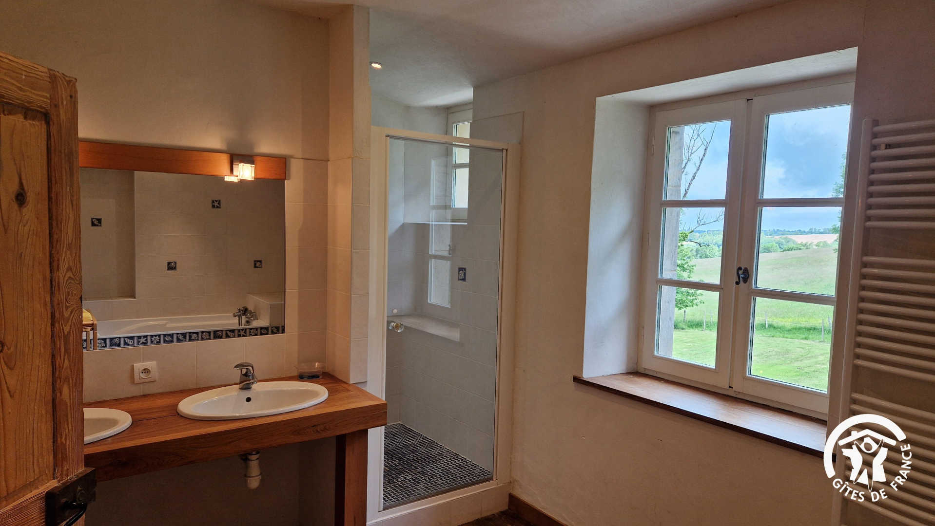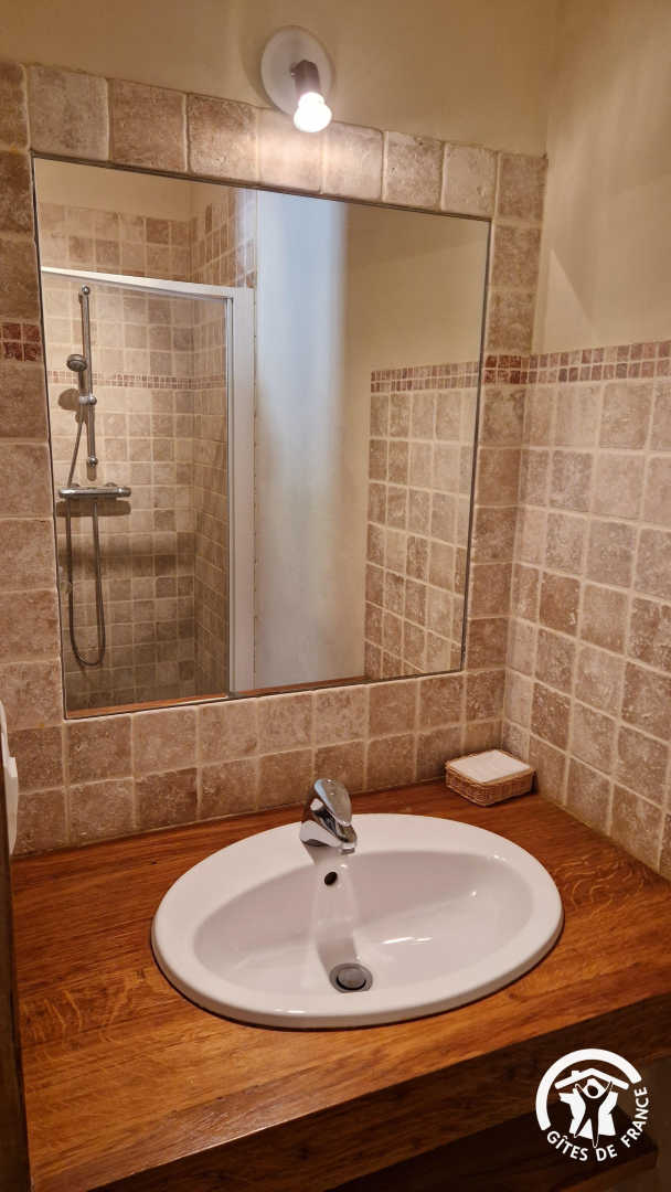 – troisième chambre avec 4 lits simples en 90cm, dont deux superposés et salle d’eau privative (douche et vasque)