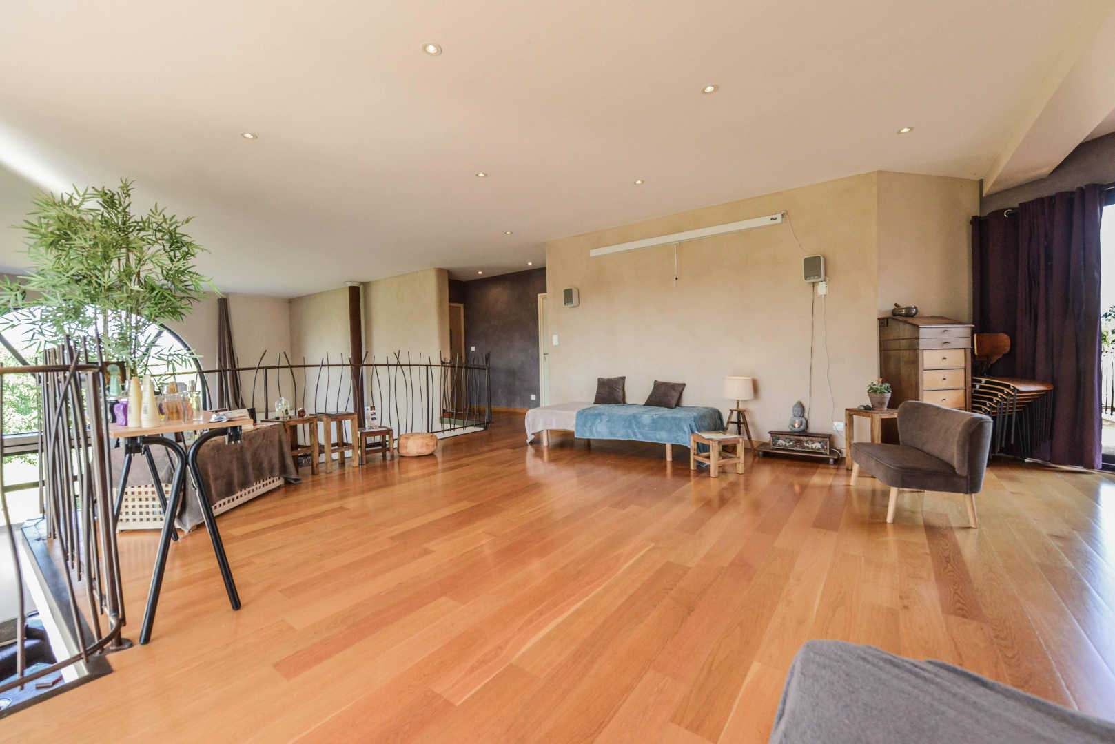 Belle maison, avec un impressionnant salon donnant sur les vallons environnants.