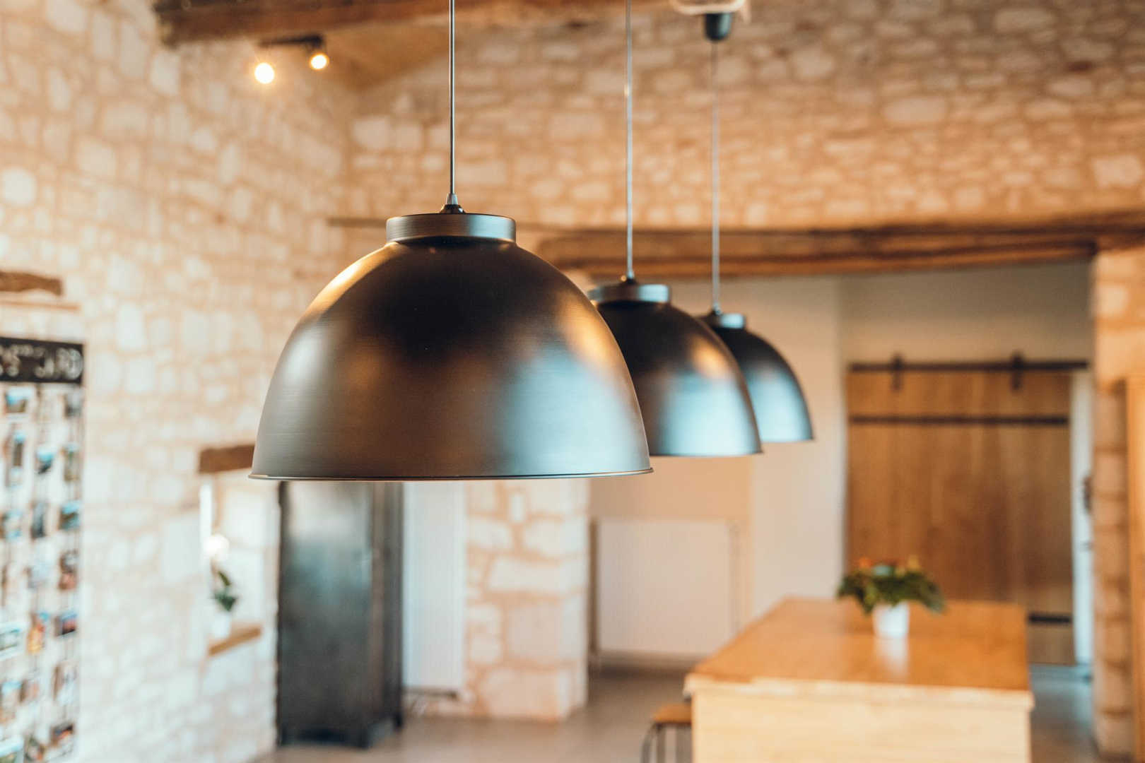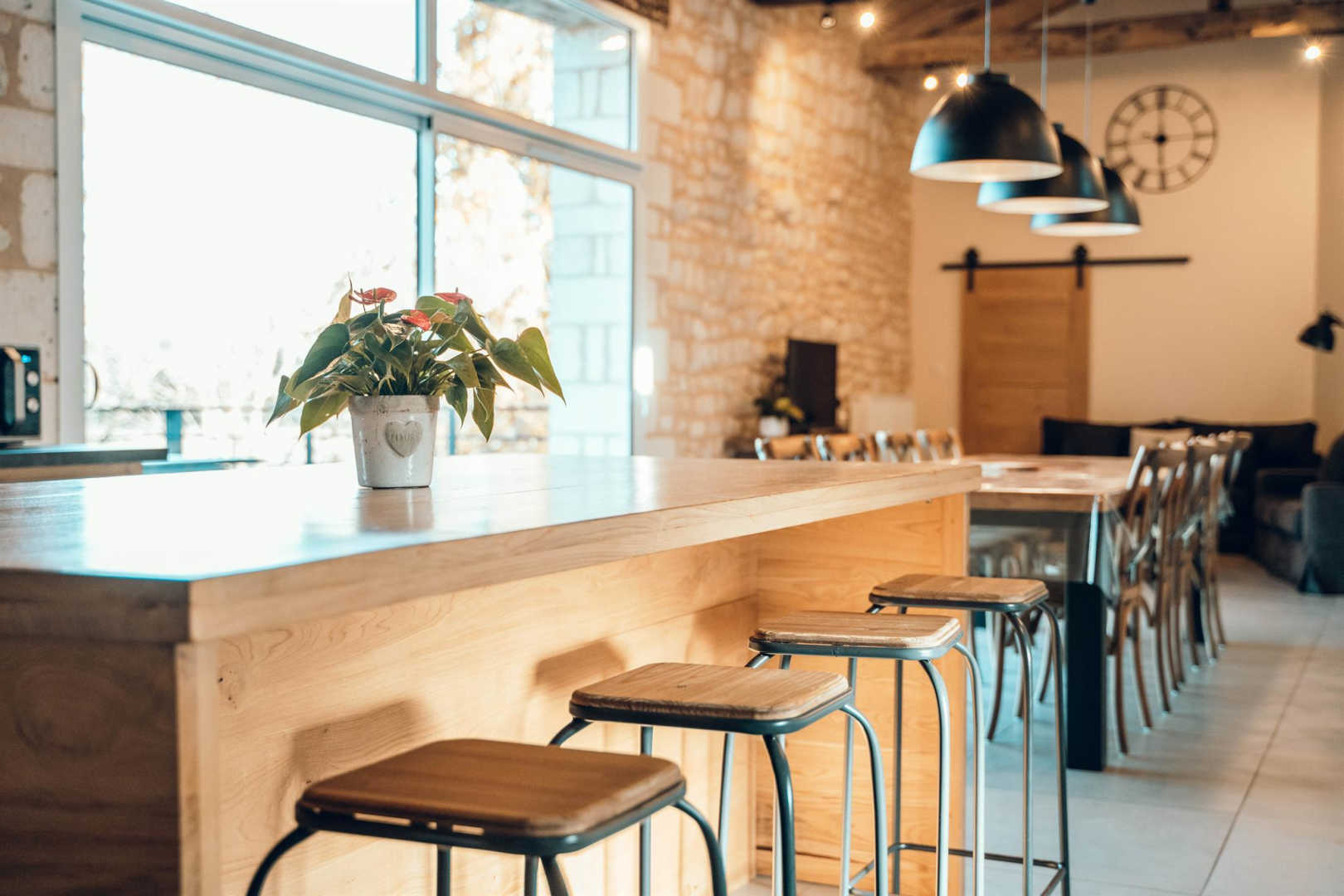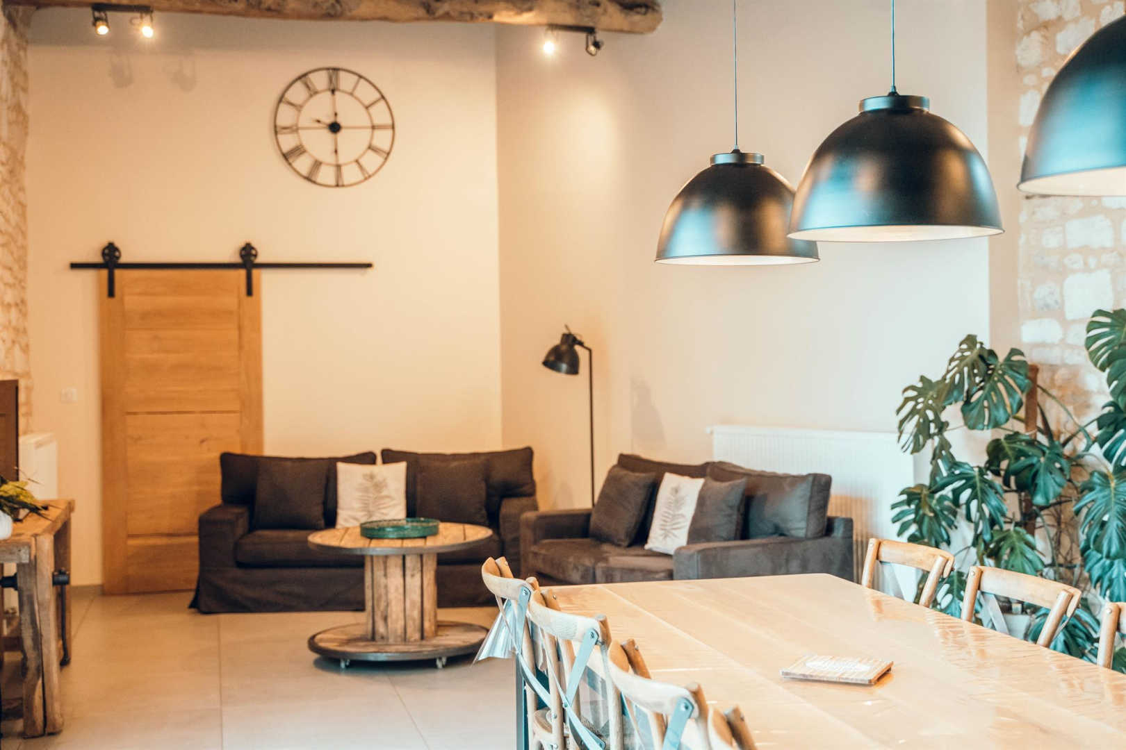 De plain pied : immense séjour avec une jolie charpente, trois chambres dont une avec salle d’eau privative et une spéciale enfants.