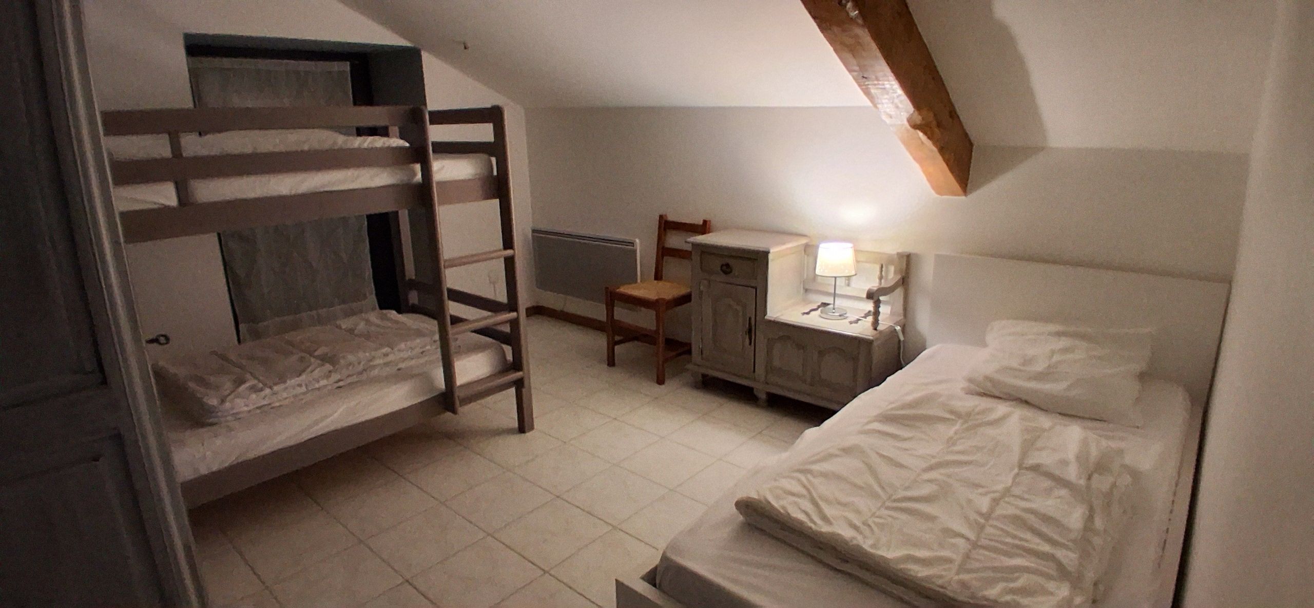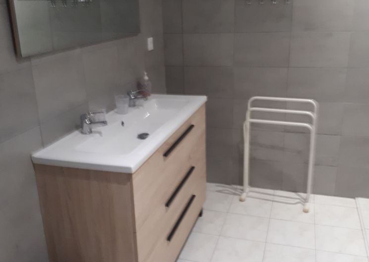 A corridor leads to 1 bedroom (1 x 160cm bed), 1 bedroom (1 x 160cm bed and 1 x 0.90cm bed), 1 bedroom (1 x 160cm bed), a shower room (washbasin and shower) in each ground floor bedroom. One bedroom with its own shower room is accessible to people with reduced mobility.