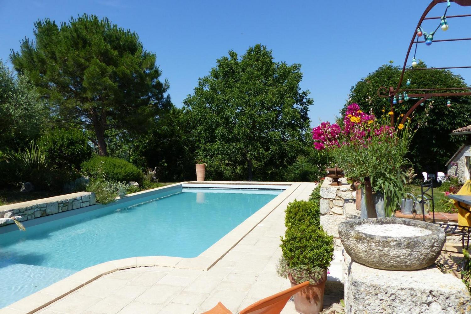 Très lumineuse, décorée avec goût et équipée de tout le confort nécessaire, pour vous assurer des vacances sous le signe de la sérénité. Mitoyen à l’habitation des propriétaires, sur une propriété de 5000m², vous profiterez de leur piscine commune au sel (10x5m – prof: 1 à 1.6m), sécurisée par une couverture, pour un bain de soleil ou un plouf, lire un livre à l’ombre dans le parc… Et si vous le souhaitez, Jean-Yves pourra vous initier au Vitrail dans son atelier (stage vitrail : nous consulter).