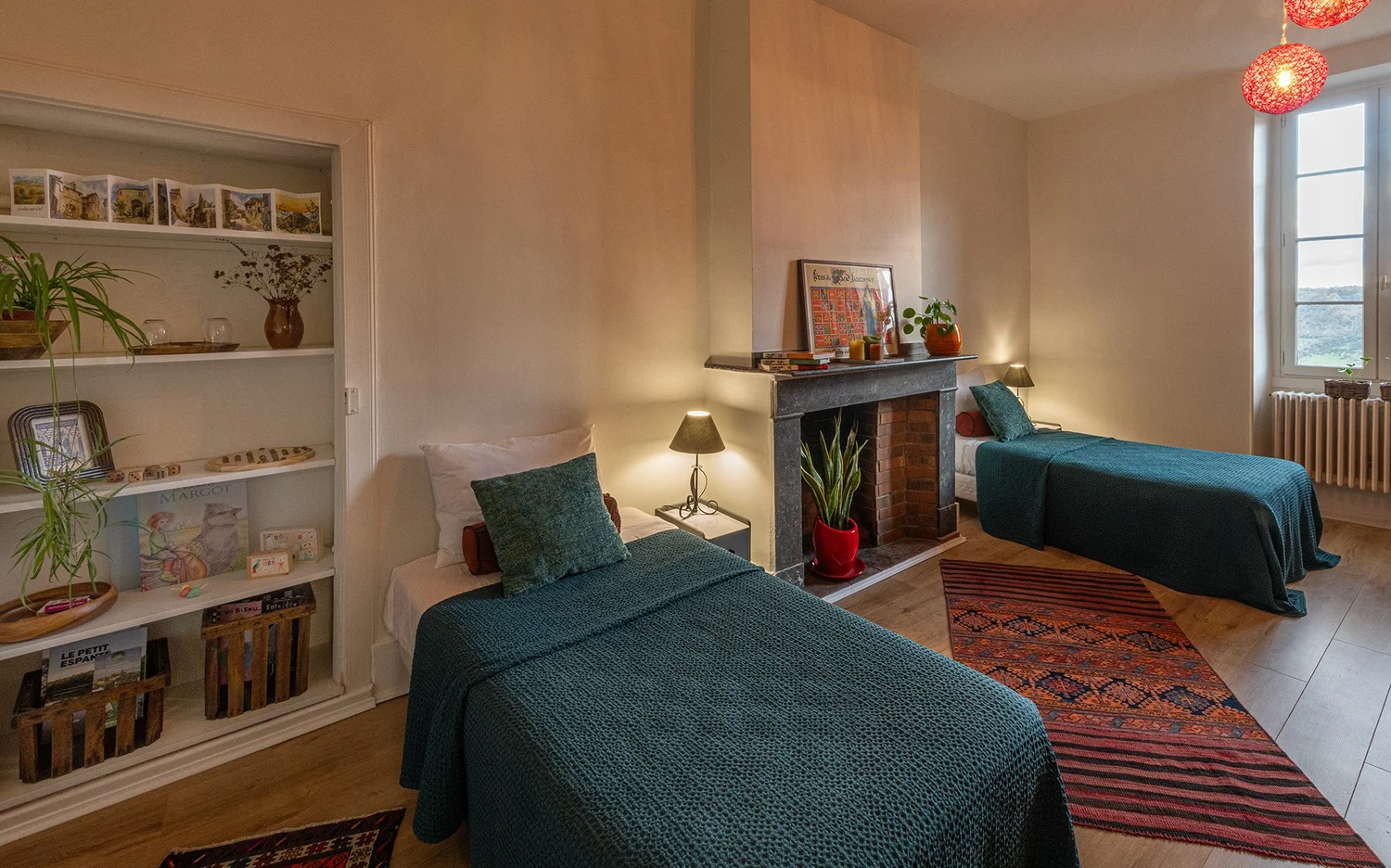 El establecimiento ofrece varias suites amplias y habitaciones, entre ellas una adaptada para personas con movilidad reducida (PMR) y un estudio con cocina americana. El gran salón, amueblado con piezas de época “Alta Época” y cómodos sofás, está a disposición de los huéspedes.