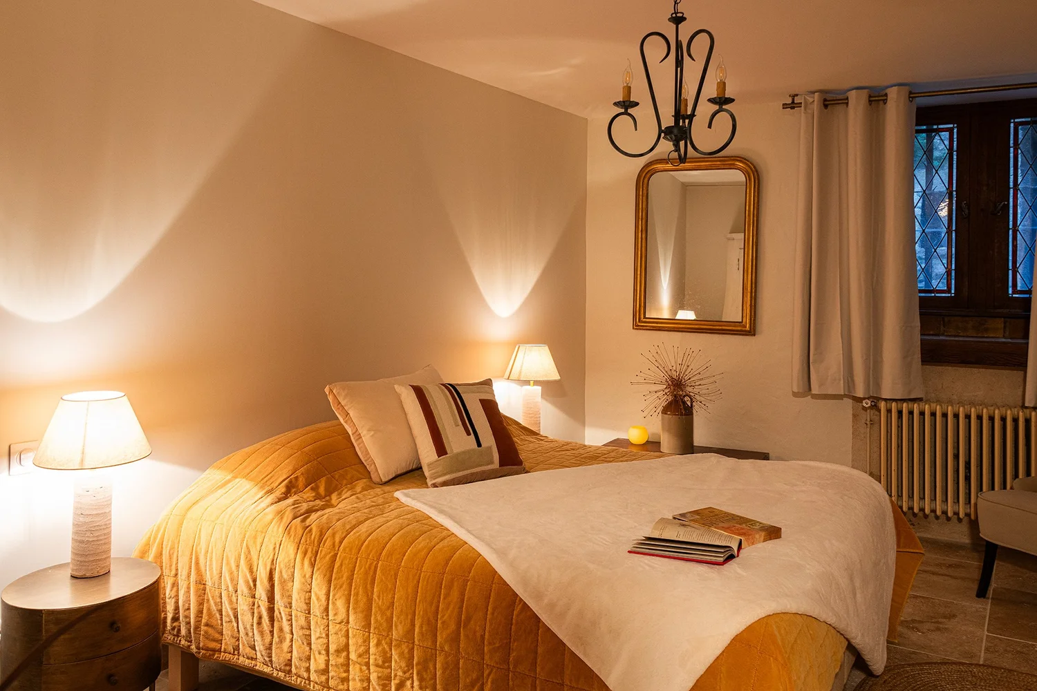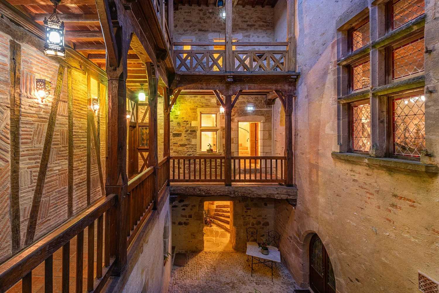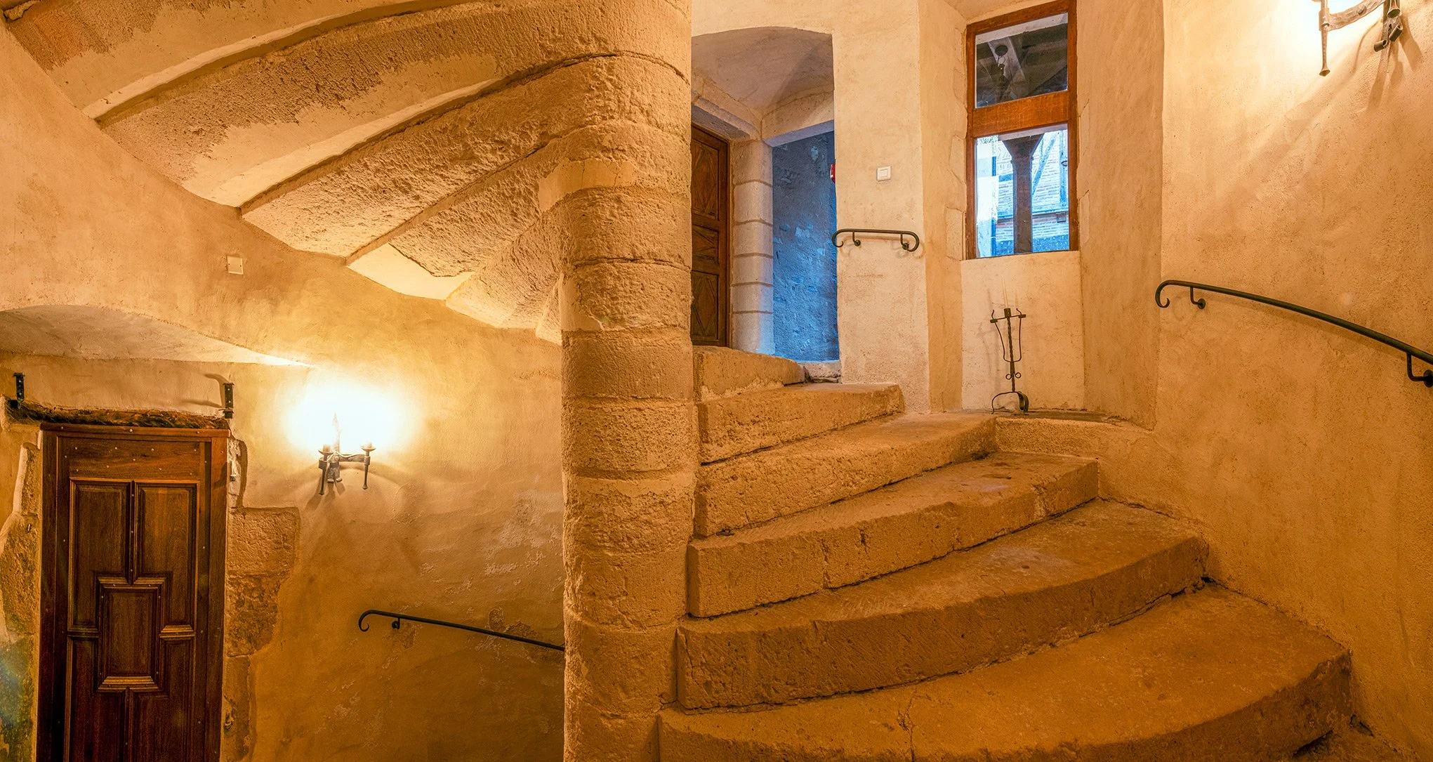 Esta casa de huéspedes con carácter está ubicada en una hermosa residencia medieval del siglo XV, que ha conservado sus elementos originales, entre ellos una majestuosa escalera de caracol, una gran ventana con parteluz y su organización espacial en torno a un sorprendente patio interior.