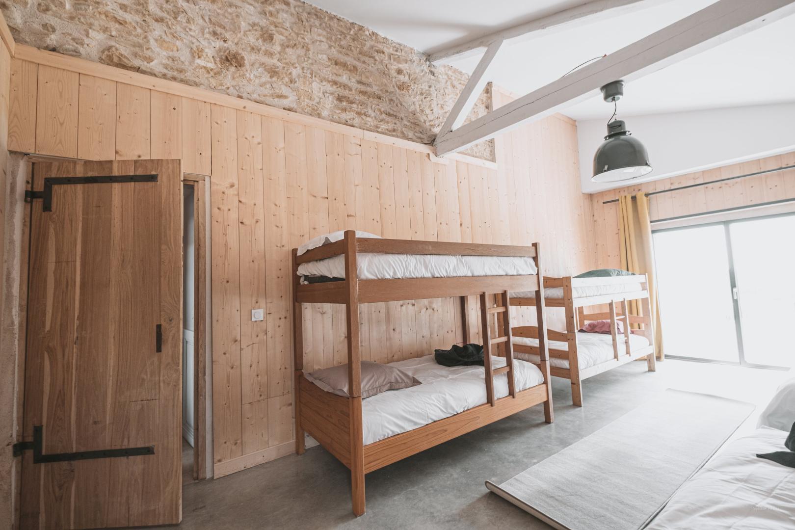 – una habitación familiar con dos literas de 90×200 y una cama modular de 180×200, baño con ducha y WC