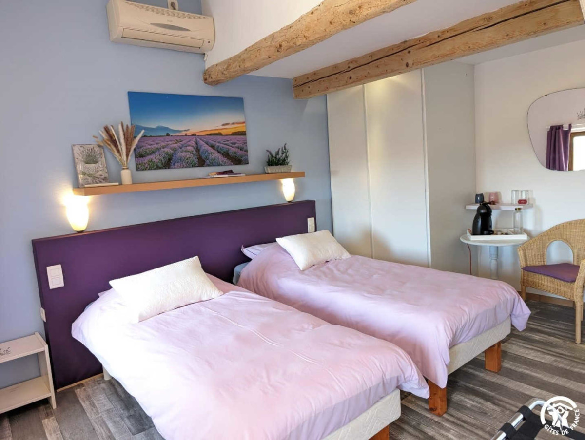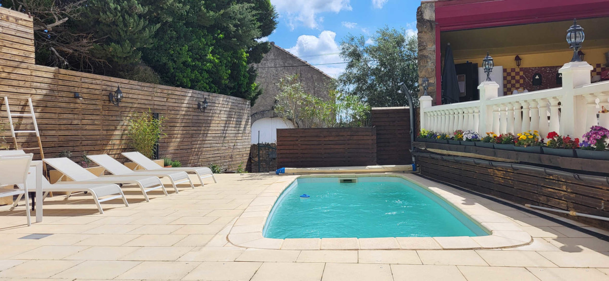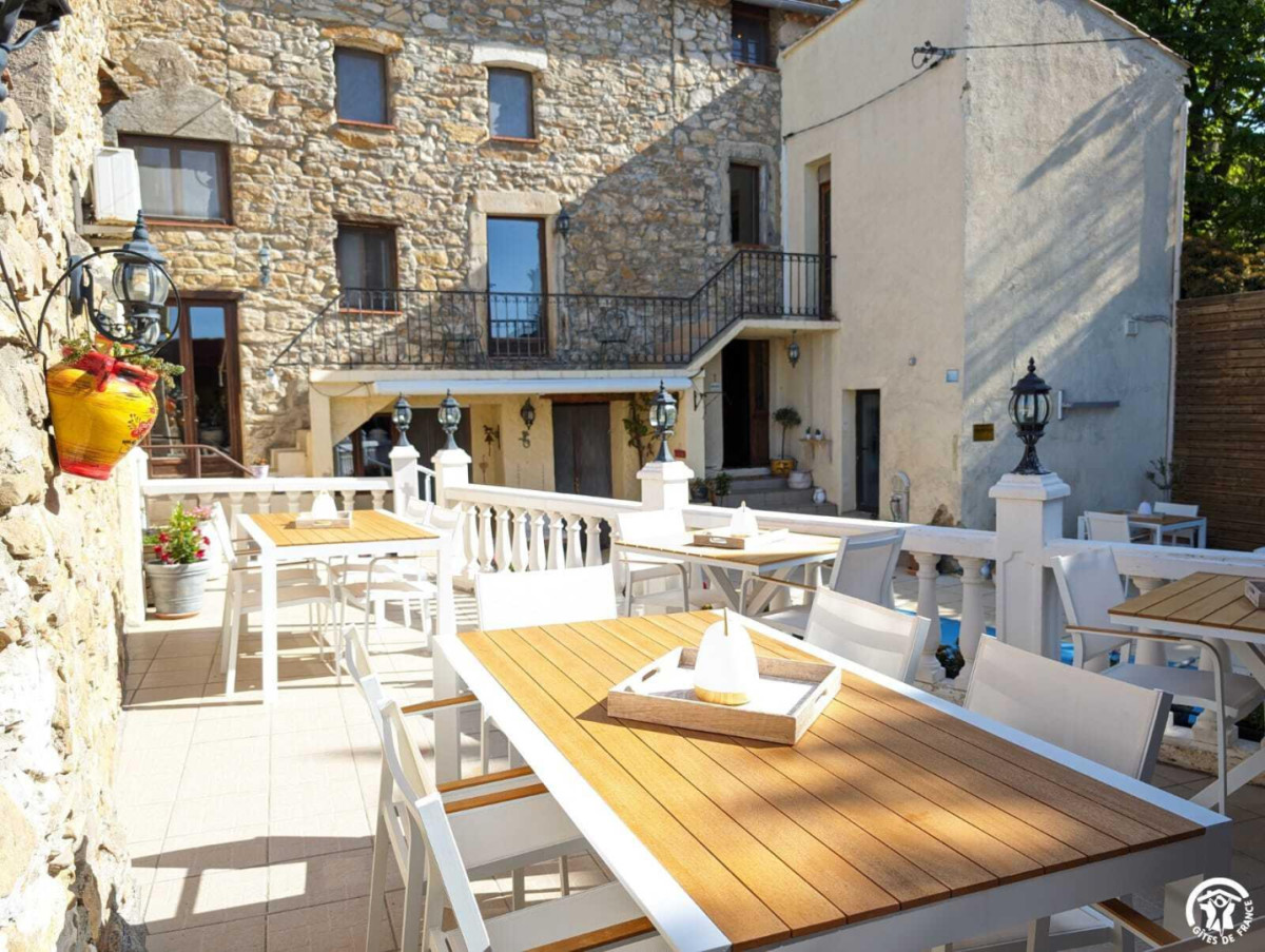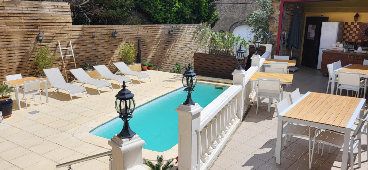 5 chambres, avec différentes thématiques, sont dédiées à l’accueil des visiteurs. Chacune bénéficie de la climatisation et est équipée d’une table avec des fauteuils, d’une télévision ainsi que d’un sèche-cheveux. De plus, elles disposent toutes d’une salle de douche et de toilettes privatives pour votre confort. Vous pourrez prendre vos petits-déjeuners dans une grande salle de caractère, servis de 8h00 à 10h30 selon vos souhaits. Celle-ci comporte également un petit coin télévision, avec aussi des jeux de société pour petits et grands à disposition. Sophie et Stéphane proposent aussi la table d’hôtes sur demande. Un menu à 23 euros, entrée, plat et dessert est proposé. C’est une cuisine familiale composée de produits frais, régionaux, le tout maison. Le 1er verre de vin avec le repas est offert. Sur la terrasse commune, vous pourrez profiter d’une piscine chauffée (grâce à des panneaux solaires) ouverte de mai à octobre de 9h00 à 21h00 et vous détendre sur les transats. Un espace restauration avec sa cuisine d’été surplombe la piscine et vous accueillera chaleureusement à tout moment de la journée, pour vos petits déjeuners, vos repas du soir ou encore un verre en terrasse. Jaccuzi disponible en haute saison / hors saison sur demande avec un supplément de 10 euros par jour *horaire: 17h-22h Caution animaux à 50€. ATTRAITS TOURISTIQUES : La ville médiévale de Minerve, située à seulement quelques kilomètres, offre un paysage pittoresque avec ses ruelles pavées et ses vestiges historiques. Les amateurs de vin seront ravis de visiter les domaines viticoles de la région, tels que le Château de Siran. Vous pourrez explorer les ruines romaines de l’Oppidum d’Ensérune. Les gorges du Brian et le lac de Jouarres offrent des possibilités de randonnée, de kayak et de baignade dans un cadre naturel préservé. Enfin, ne manquez pas de visiter le village de Bize-Minervois, réputé pour ses charmantes ruelles bordées de maisons en pierre. – Chambre double, douche ou baignoire, WC, 1 chambre