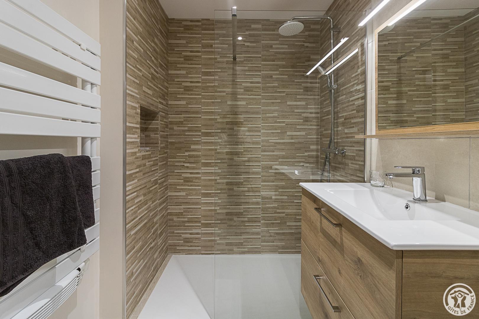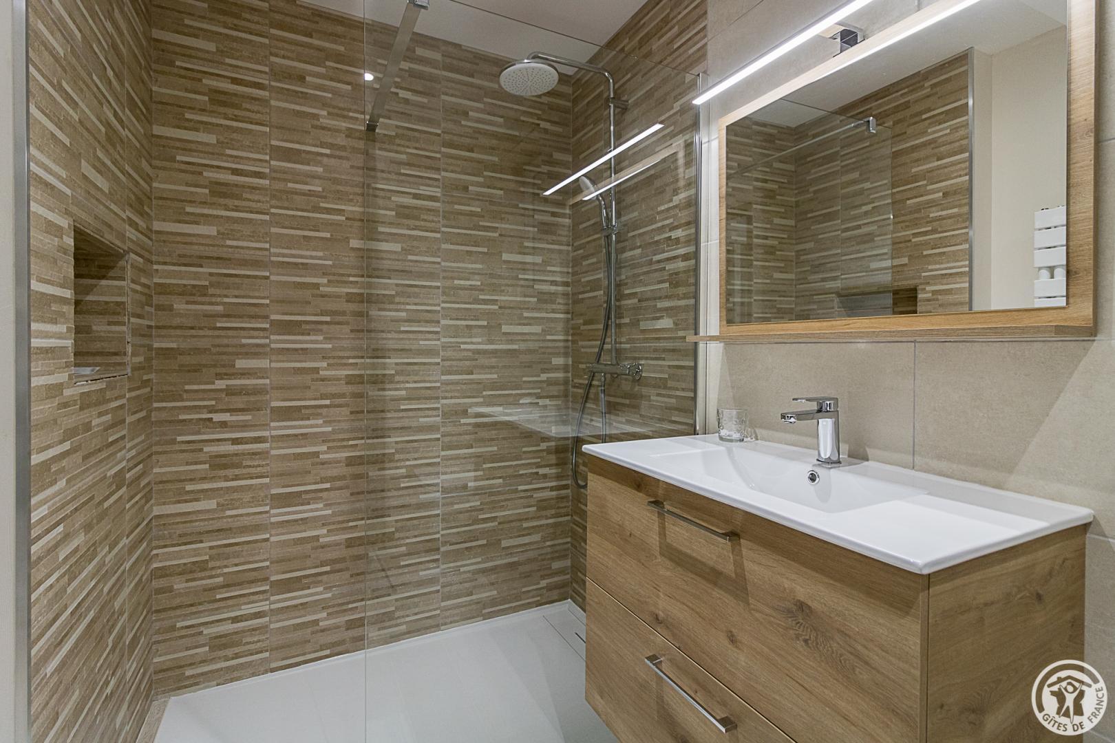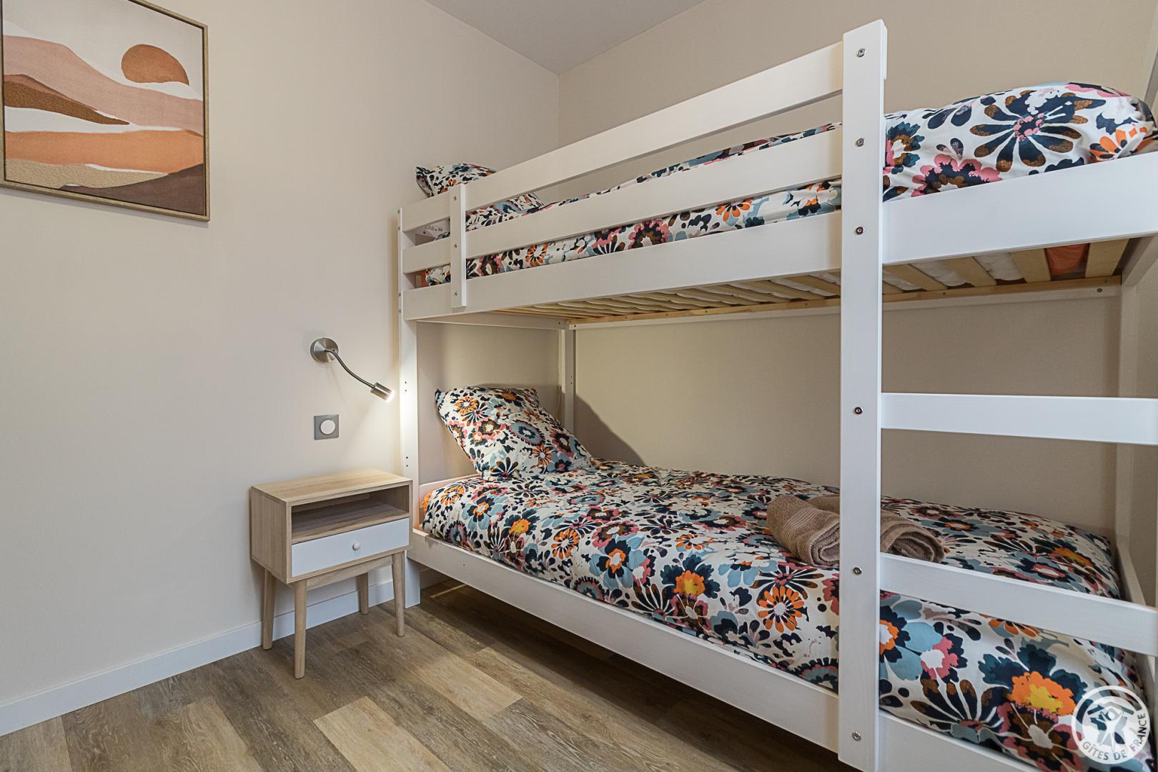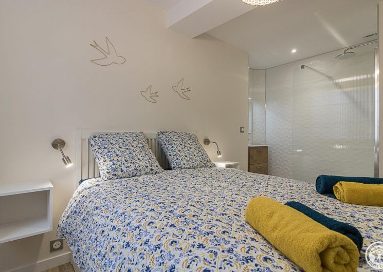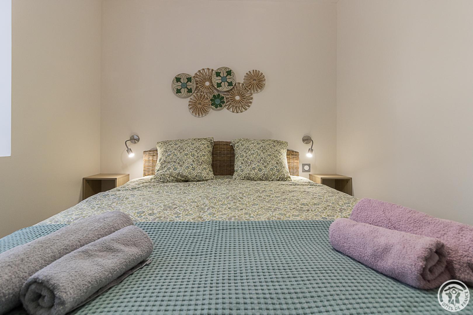 La Maisoun d’Odette es de una sola planta: entrada, cocina, salón con salida a la terraza, 3 habitaciones (2 camas individuales 90x190cm literas) (1 cama doble 160x200cm) (1 cama doble 140x200cm con cuarto de ducha), cuarto de ducha/WC, WC separado. Calefacción por bomba de calor (aire acondicionado reversible). Conexión Internet Wifi. Equipamiento para bebés (cuna y trona). Casa rural para no fumadores.