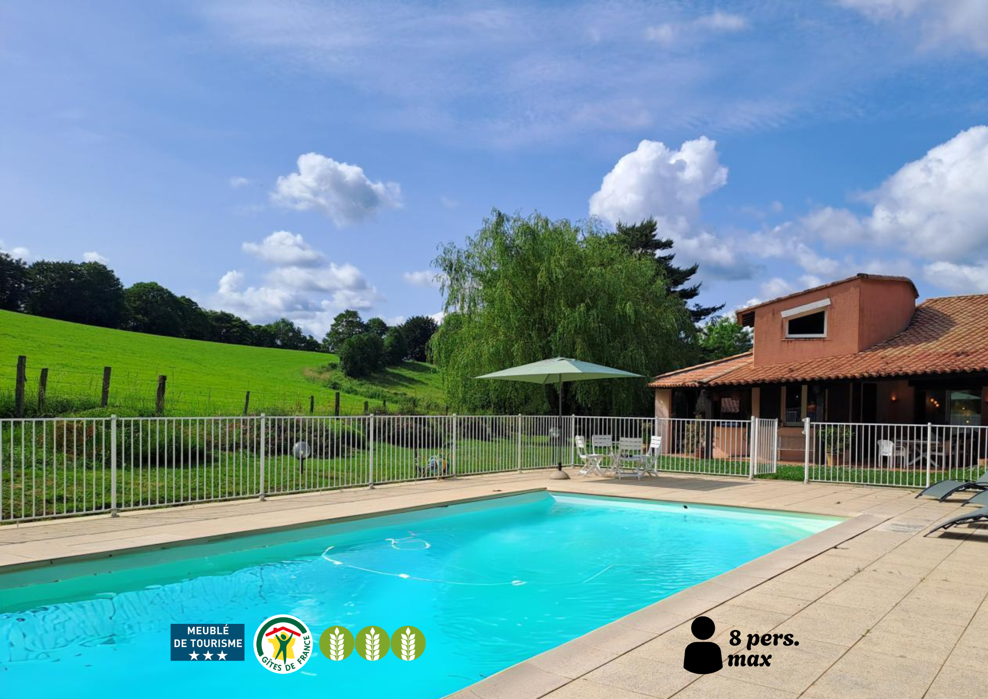 – une grande piscine privée (11 x 5,5 m, jusqu’à 2,80 m de profondeur), sécurisée par une clôture aux normes,