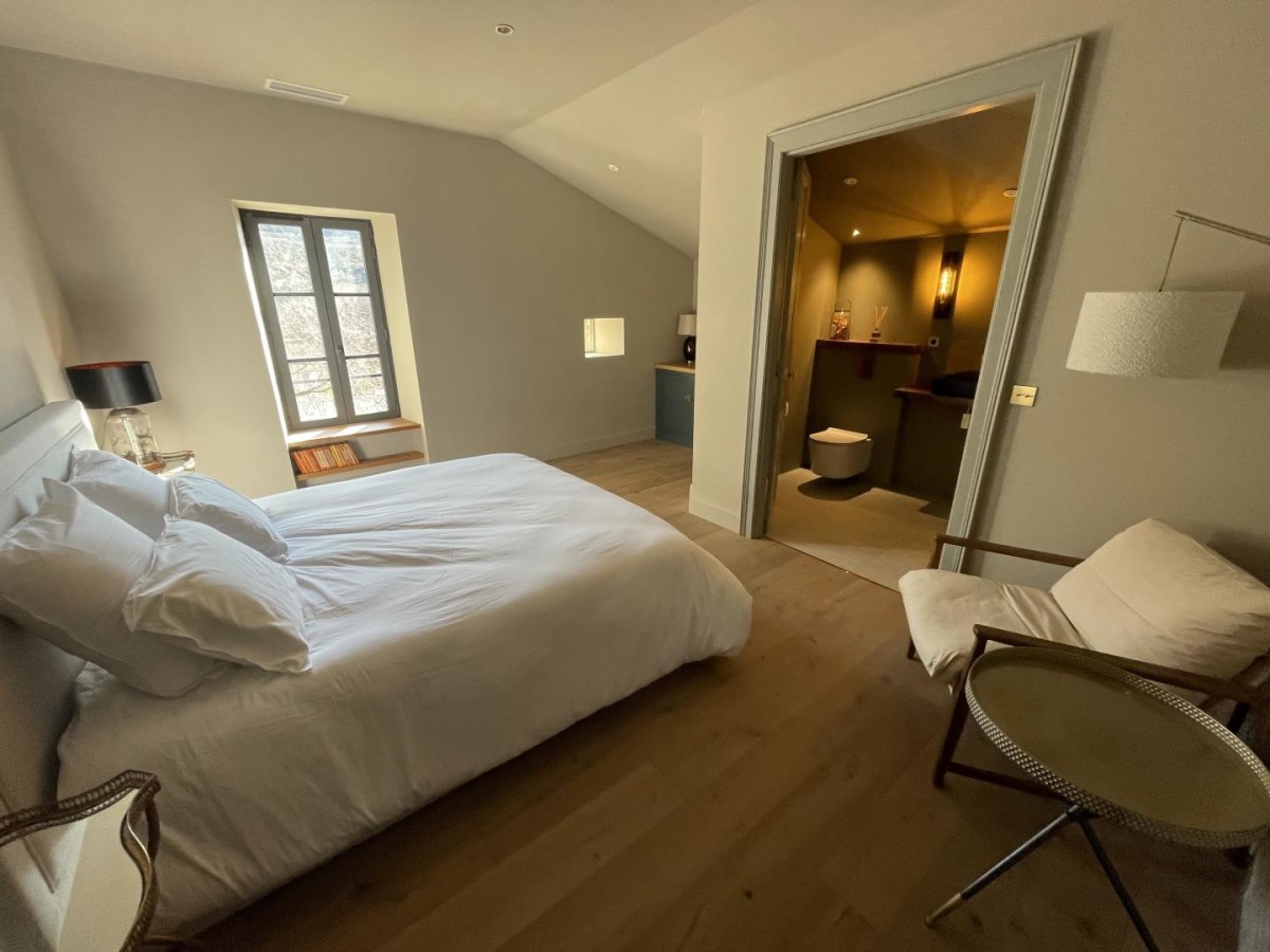 En el corazón del pueblo y de la finca vinícola de La Traversée, alójese en una casa de viticultor magníficamente restaurada. Cinco elegantes habitaciones, que combinan el encanto de la época con las comodidades modernas, ofrecen una experiencia única. La espaciosa suite King, con su lujoso cuarto de baño de cobre y ducha a ras de suelo, refleja el refinado ambiente de la planta superior. Catas de vino organizadas por el enólogo Gavin, veladas musicales y un exuberante jardín con vistas a la montaña le esperan para momentos de relax. El chef Antoine Loiseau ofrece cada noche cocina gourmet local y de temporada, mientras que obras de arte y artesanía local embellecen toda la casa. Una estancia inolvidable donde el confort se une a la autenticidad.