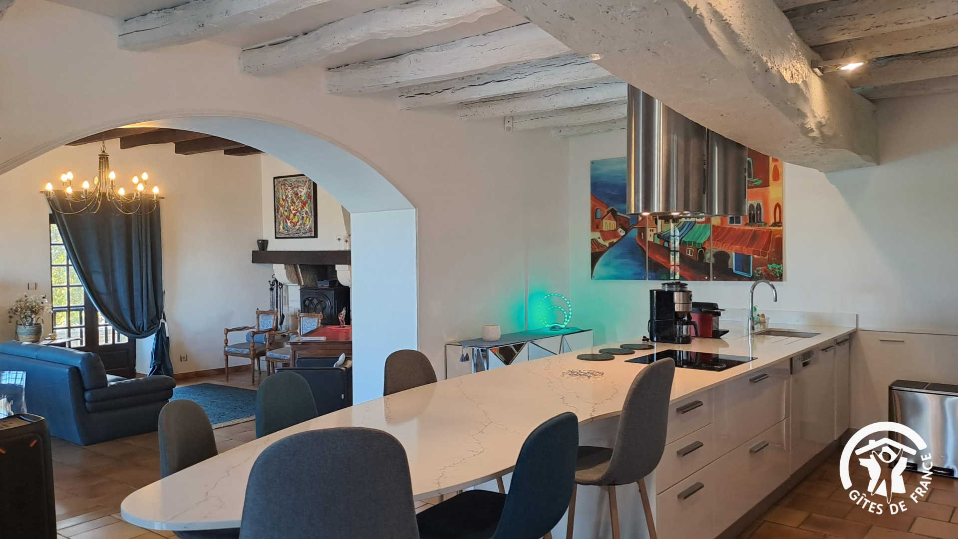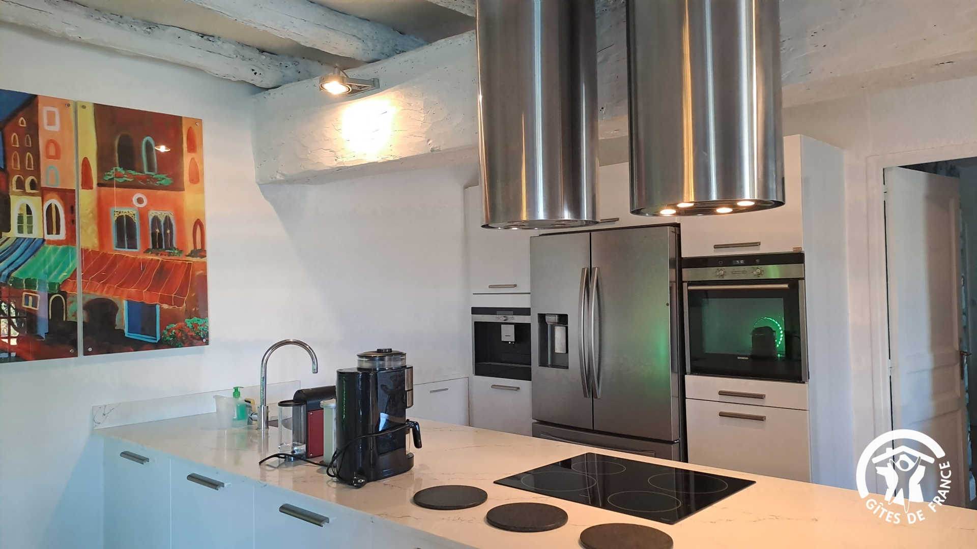 Cuisine entièrement équipée : frigo américain, congélateur, micro onde, four, lave vaisselle,
