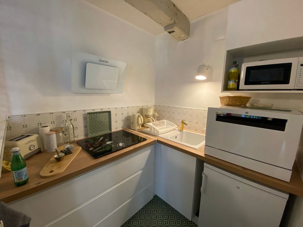 Paredes de briquetas, un balcón al aire libre con vistas al patio interior aportan mucho encanto a este apartamento amueblado y arreglado para 2 personas.