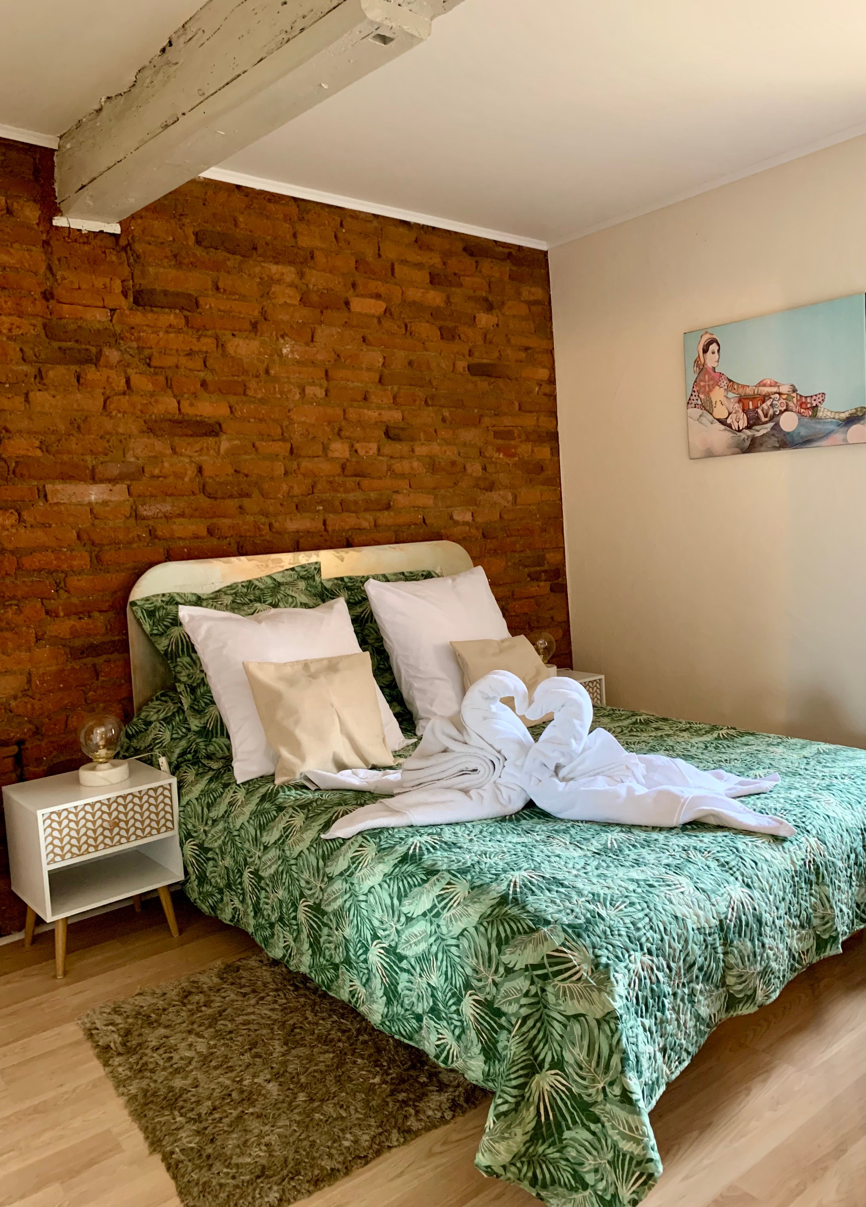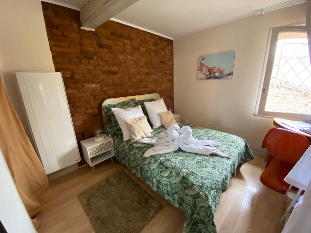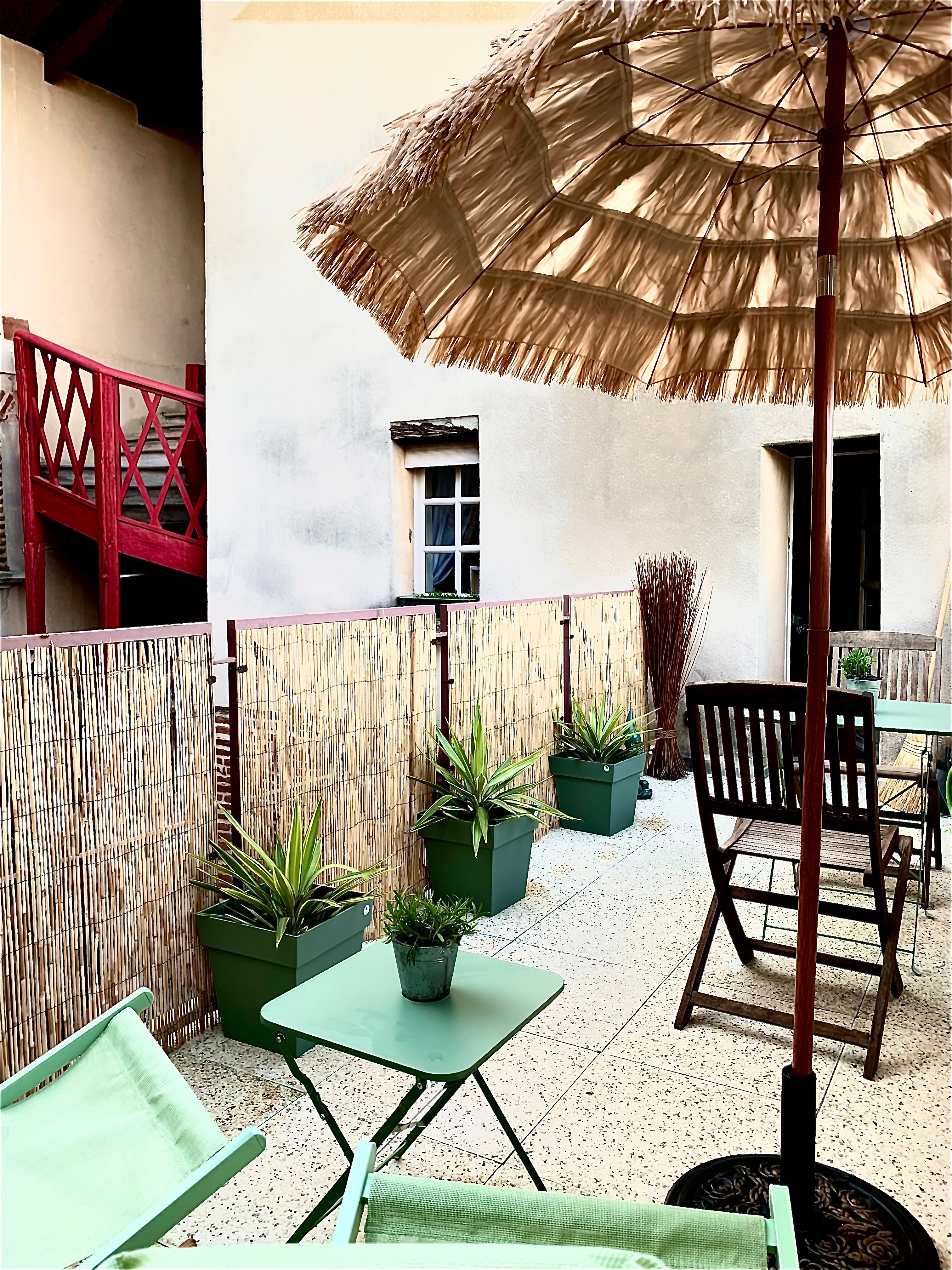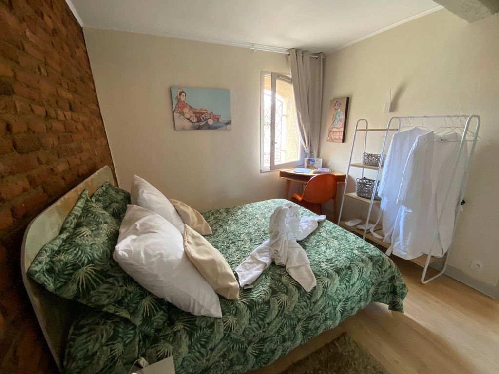 Con vistas a los patios interiores del centro histórico, hay un dormitorio tranquilo de 10,5 m2 con una cama de 140, espacio de almacenamiento y escritorio. Un gran baño (6,5 m2) completa este alojamiento. Wifi en todo el alojamiento, sábanas, toallas, albornoces proporcionados.