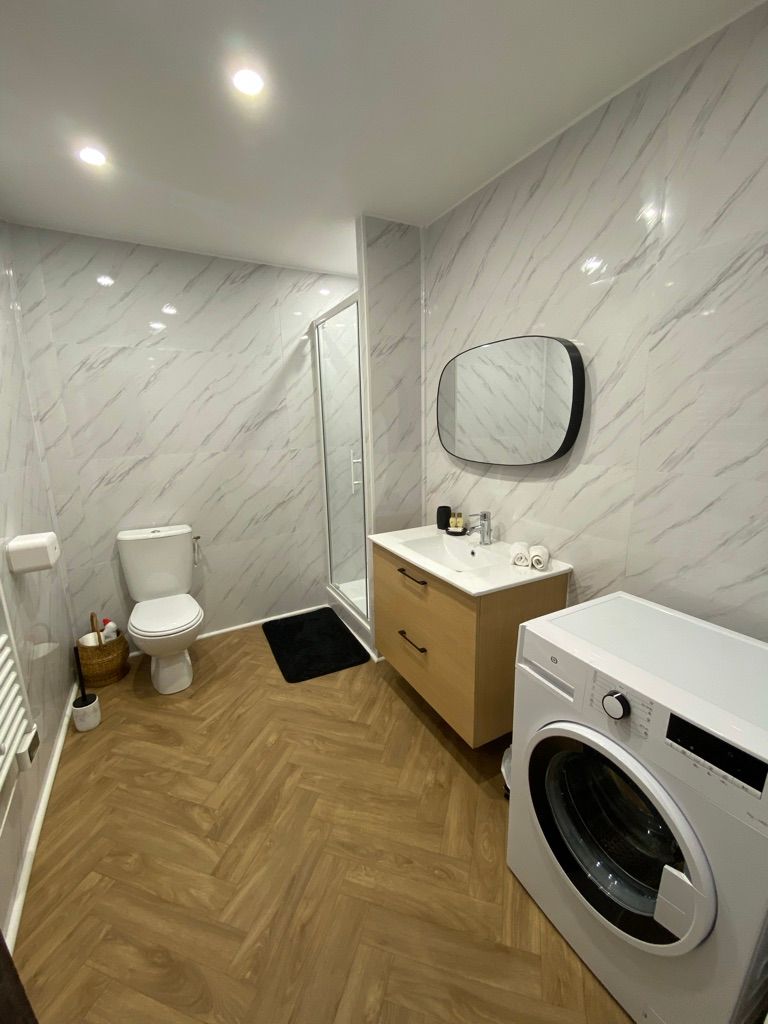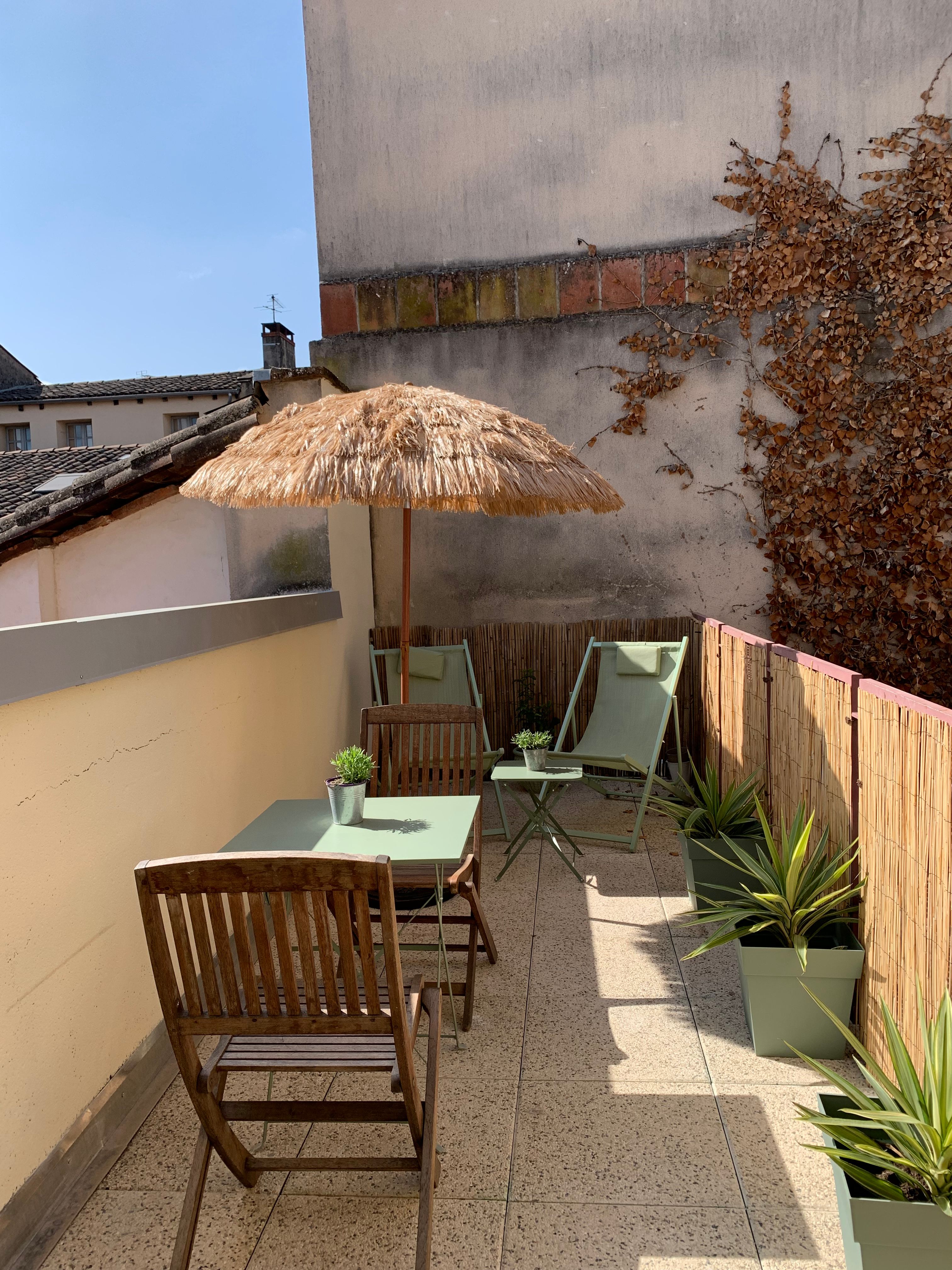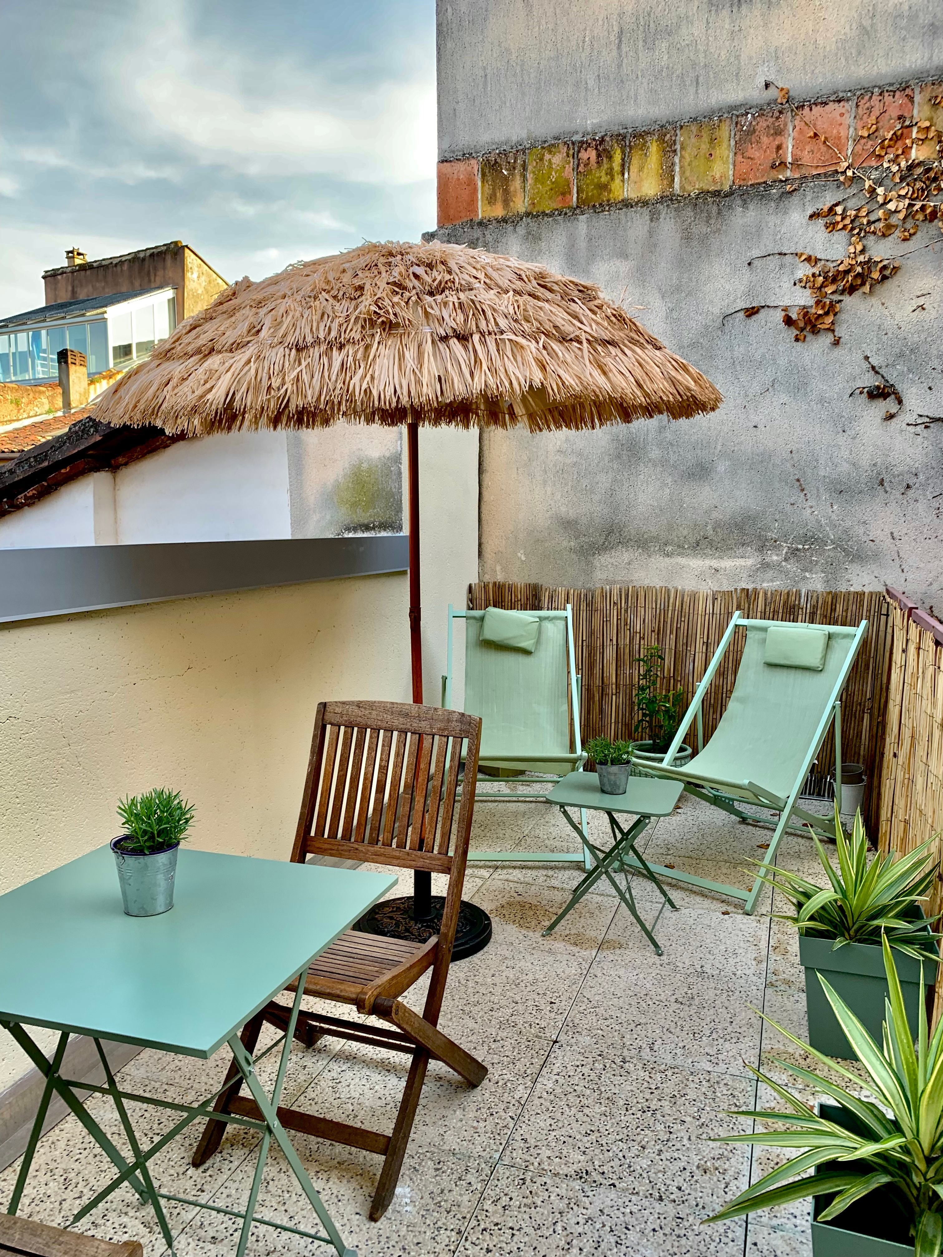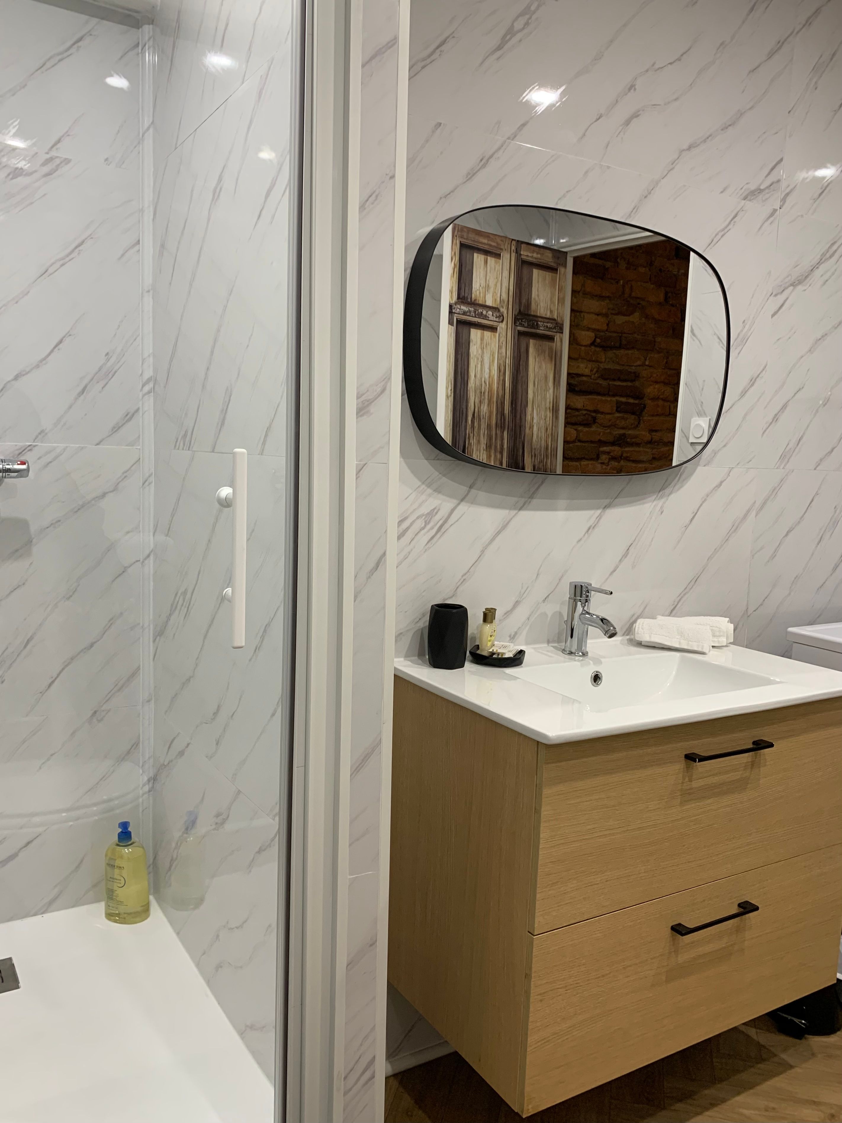 Con vistas a los patios interiores del centro histórico, hay un dormitorio tranquilo de 10,5 m2 con una cama de 140, espacio de almacenamiento y escritorio. Un gran baño (6,5 m2) completa este alojamiento. Wifi en todo el alojamiento, sábanas, toallas, albornoces proporcionados.