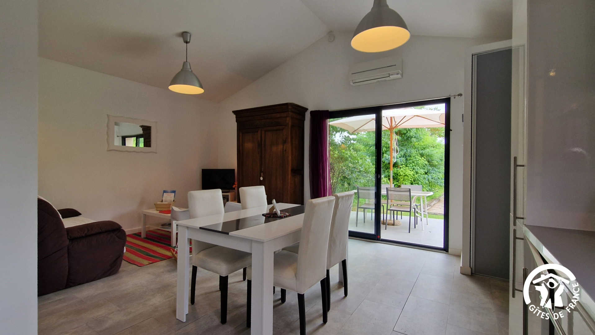 De plain-pied, climatisé et indépendant, aménagé dans une dépendance à côté du domicile des propriétaires.