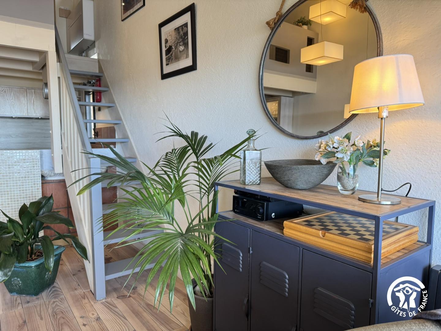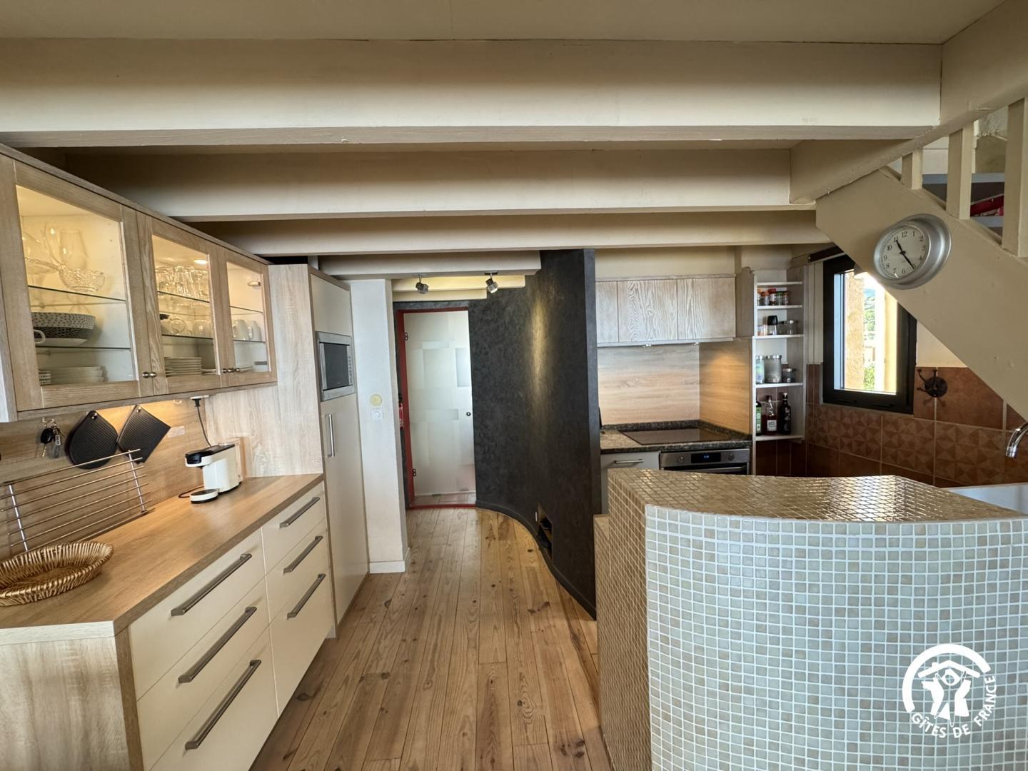 La large baie vitrée ouverte sur la grande bleue vous invite au voyage, comme à bord d’une croisière. Face au Grand-large, appartement coquet et intime, aménagé dans une co-propriété dominant une petite plage entre Collioure et Port-Vendres. 1e étage: Séjour lumineux et spacieux, avec coin cuisine équipé, ouvert par une grande baie vitrée s’ouvrant sur la Méditerranée, salle d’eau (wc). 2e étage en mezzanine ouverte : chambre avec 1 lit 160, 2e wc, coin détente. Parking clos privatif sur place. Accès à la plage ainsi qu’au sentier du littoral, au pied de la résidence.