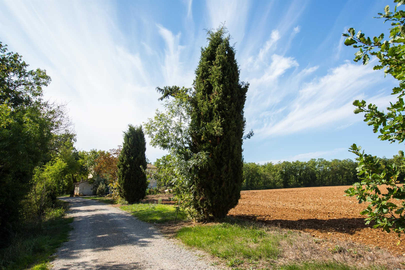 Une maison toute en pierres blanches au bout du chemin