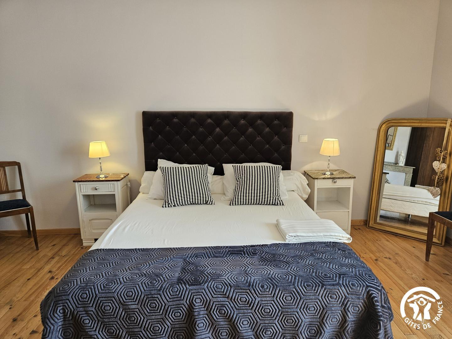 – Chambre 1 : un lit en 160x200cm et un lit bébé à barreaux