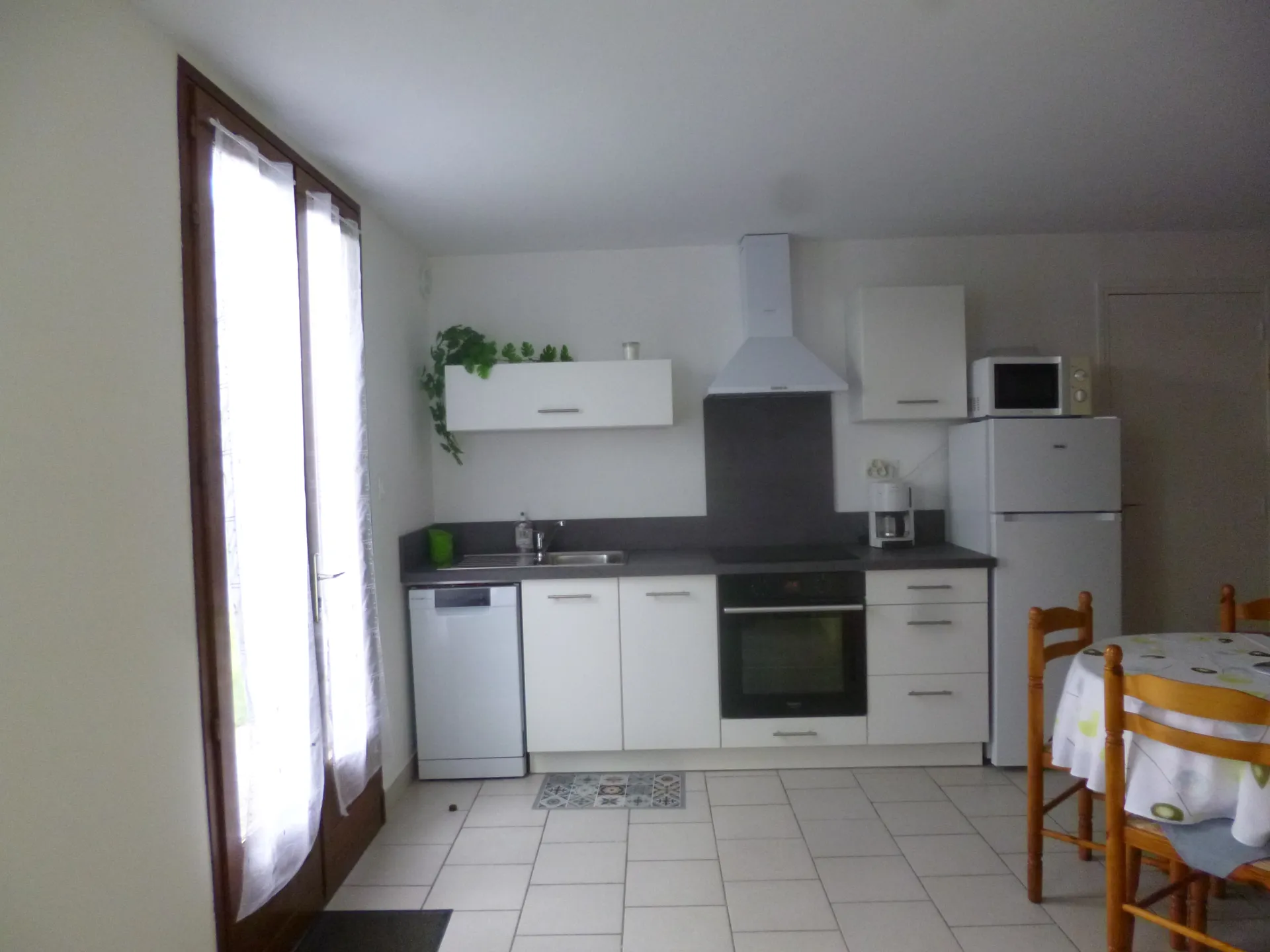 Coin cuisine équipée (plaques induction, four chaleur tournante, micro-ondes, réfrigérateur / congélateur, lave-vaisselle).